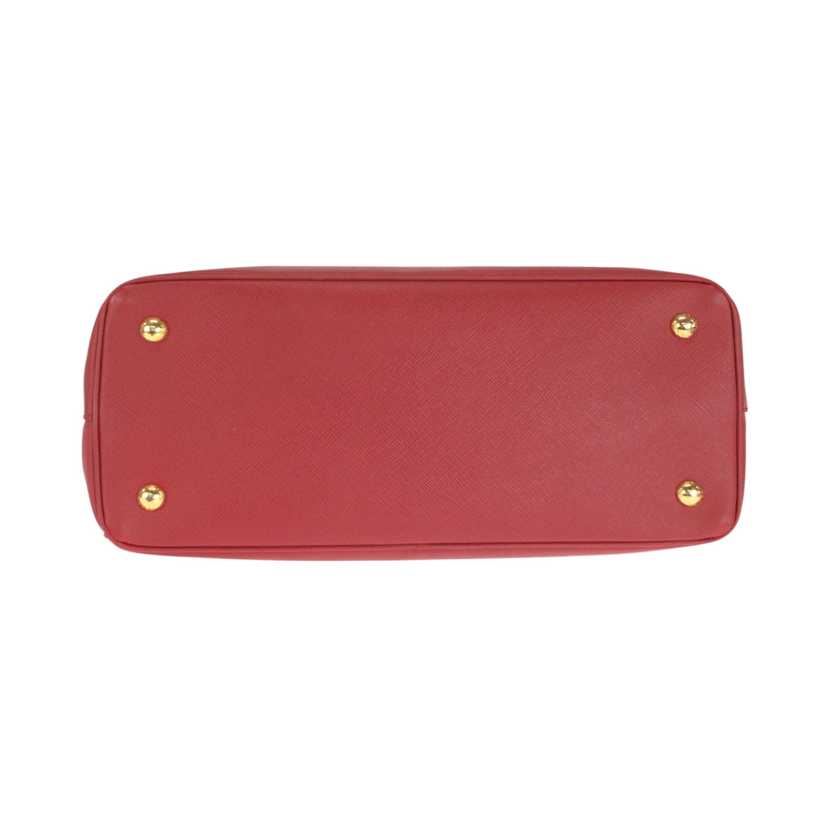 PRADA Tote Bag leather Red Gold Metal Tote Bag handbag Galleria Saffiano Triangle With logo Women Used Authentic