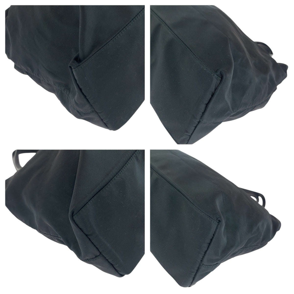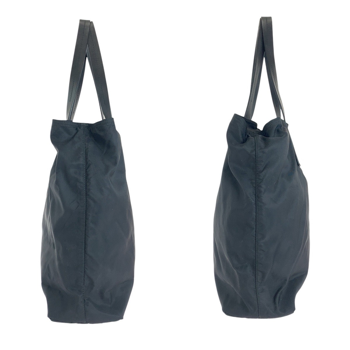 PRADA Tote Bag Nylon, Leather Black SilverMetal Tote Bag Shoulder Bag Test Triangle With logo Women Used Authentic