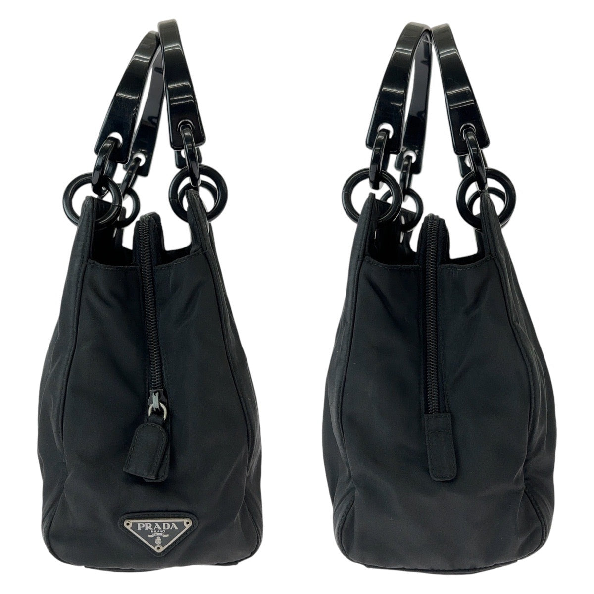 PRADA Tote Bag Nylon, Plastic Black SilverMetal Tote Bag handbag Test Triangle With logo Women Used Authentic