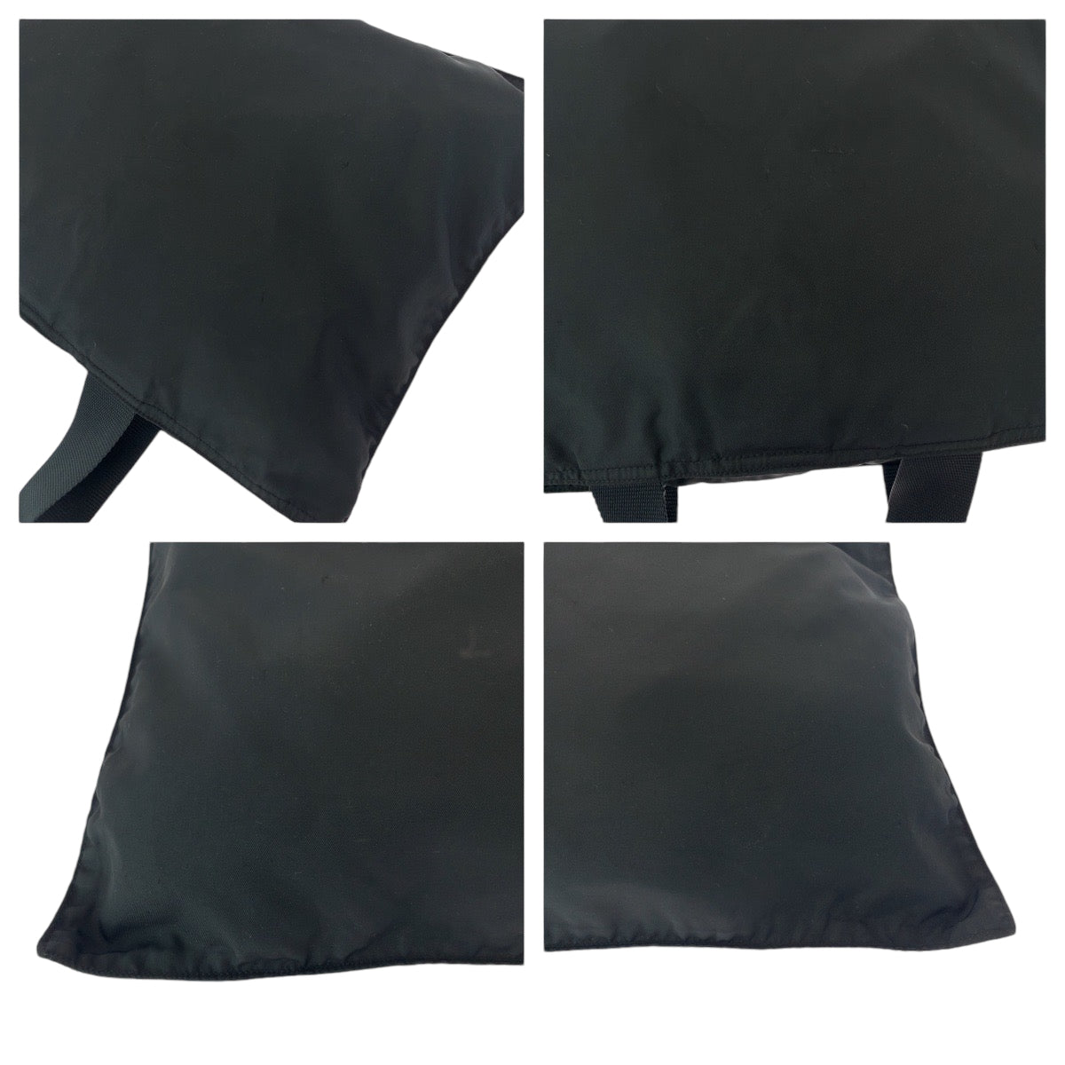 PRADA Tote Bag Nylon Black SilverMetal Tote Bag Shoulder Bag Test Triangle With logo Women Used Authentic