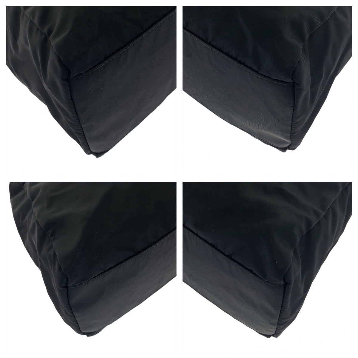 PRADA Tote Bag Nylon Black SilverMetal Tote Bag Shoulder Bag Test Triangle With logo Women Used Authentic