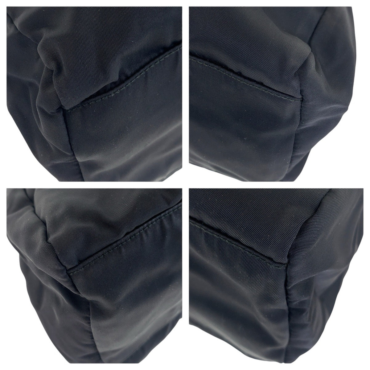PRADA Tote Bag Nylon Black SilverMetal Tote Bag handbag Test Triangle With logo Women Used Authentic