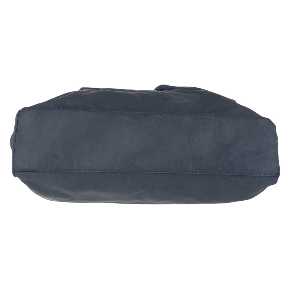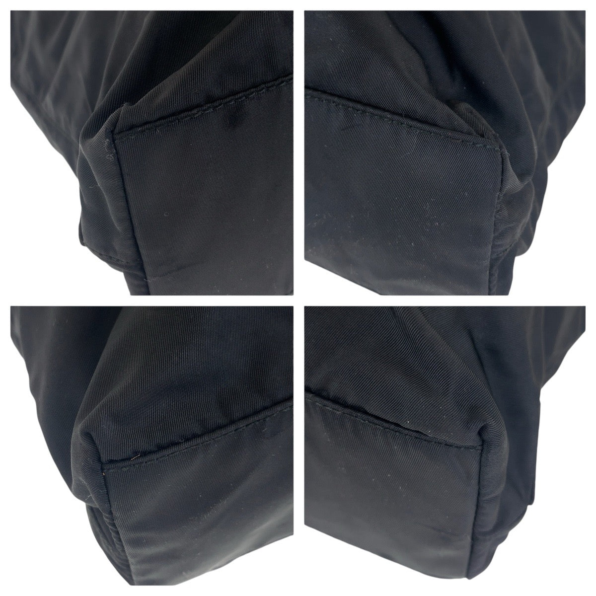 PRADA Tote Bag Nylon Black SilverMetal Tote Bag Shoulder Bag Test Triangle With logo Women Used Authentic