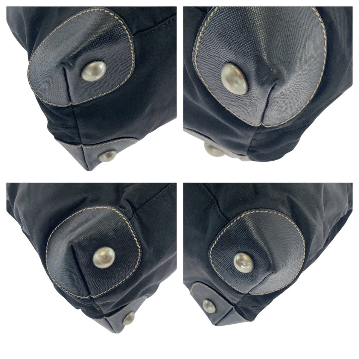 PRADA Tote Bag Nylon Black SilverMetal Tote Bag handbag Test Triangle With logo Women Used Authentic