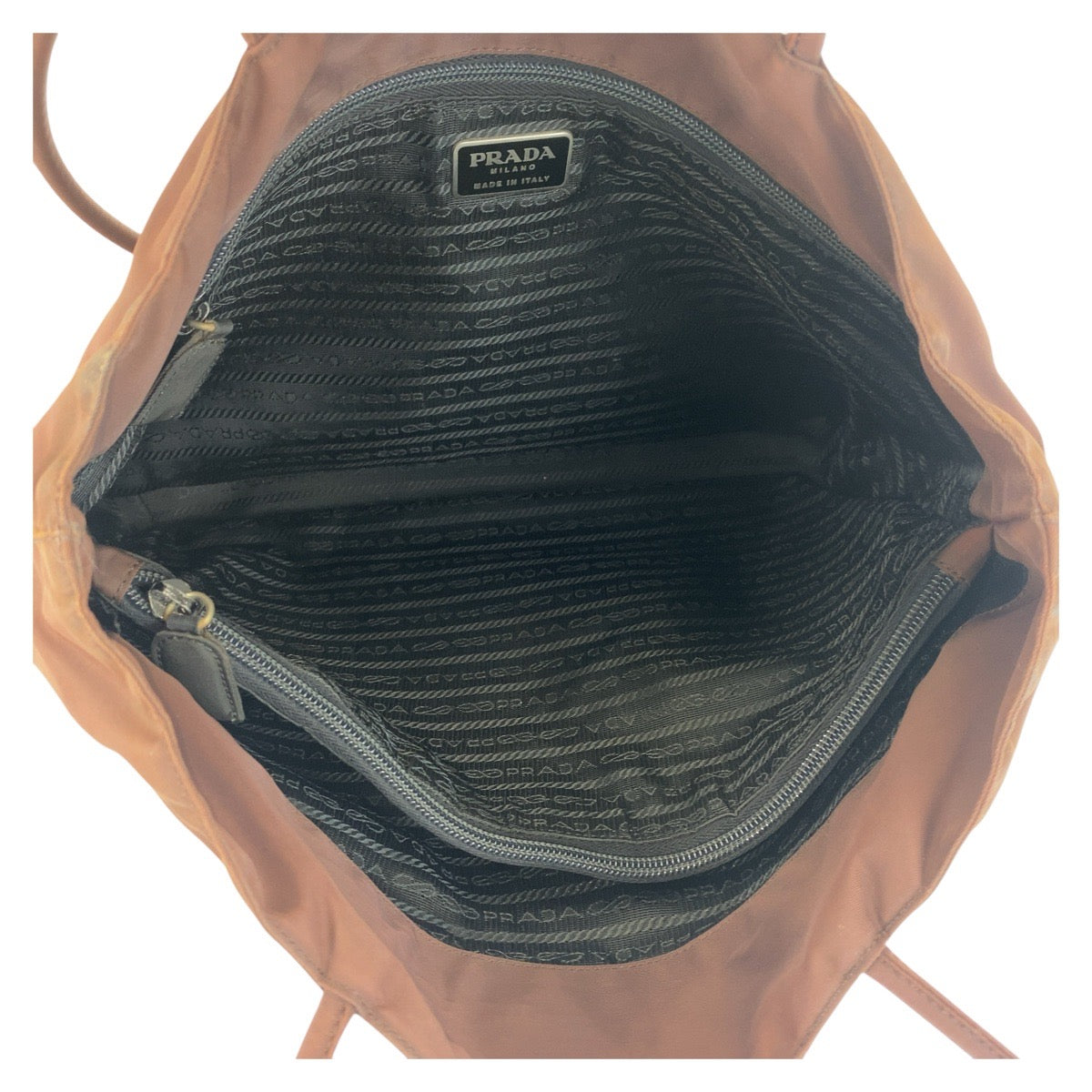 PRADA Tote Bag Nylon Brown Silver Metal Tote Bag Shoulder Bag Test Triangle With logo Women Used Authentic
