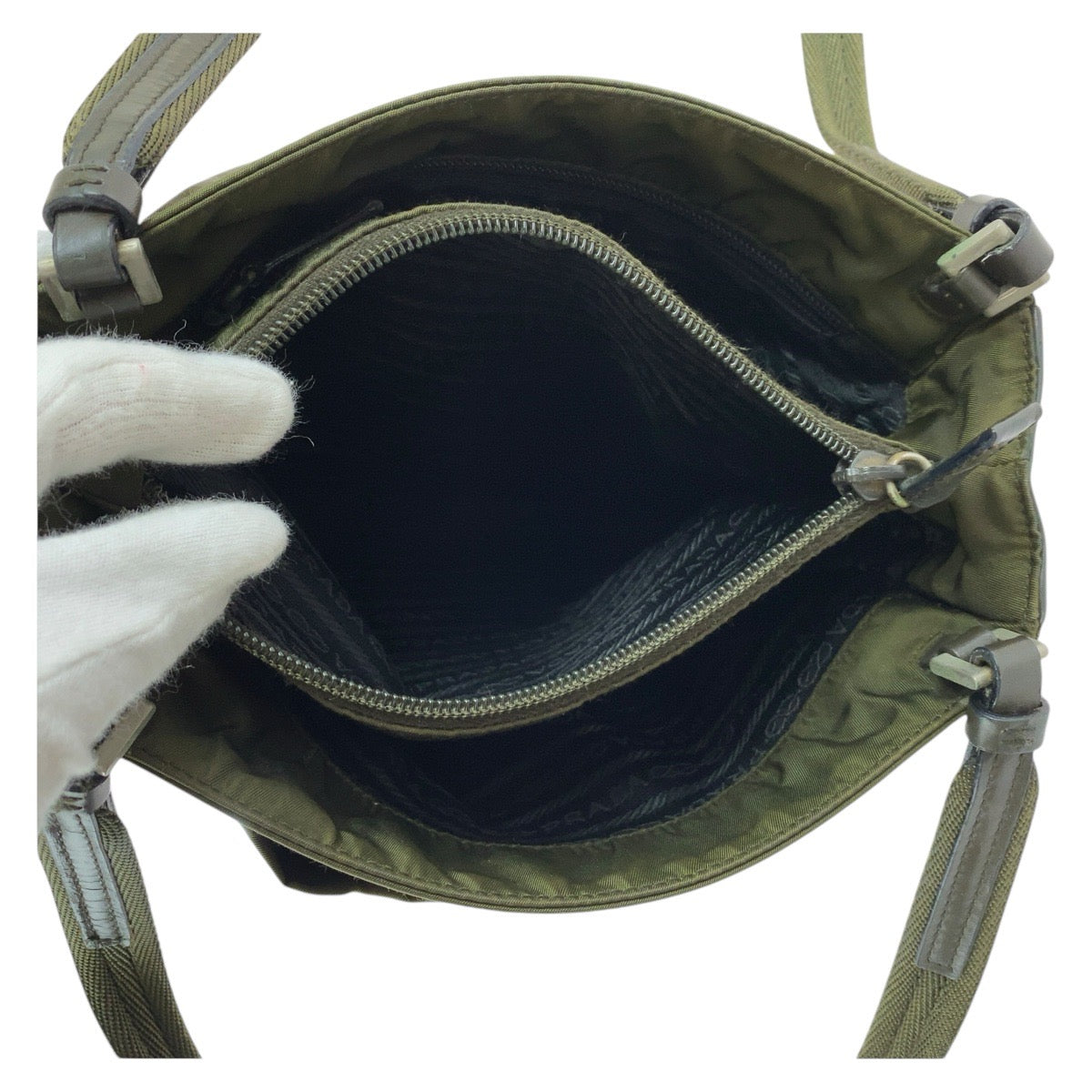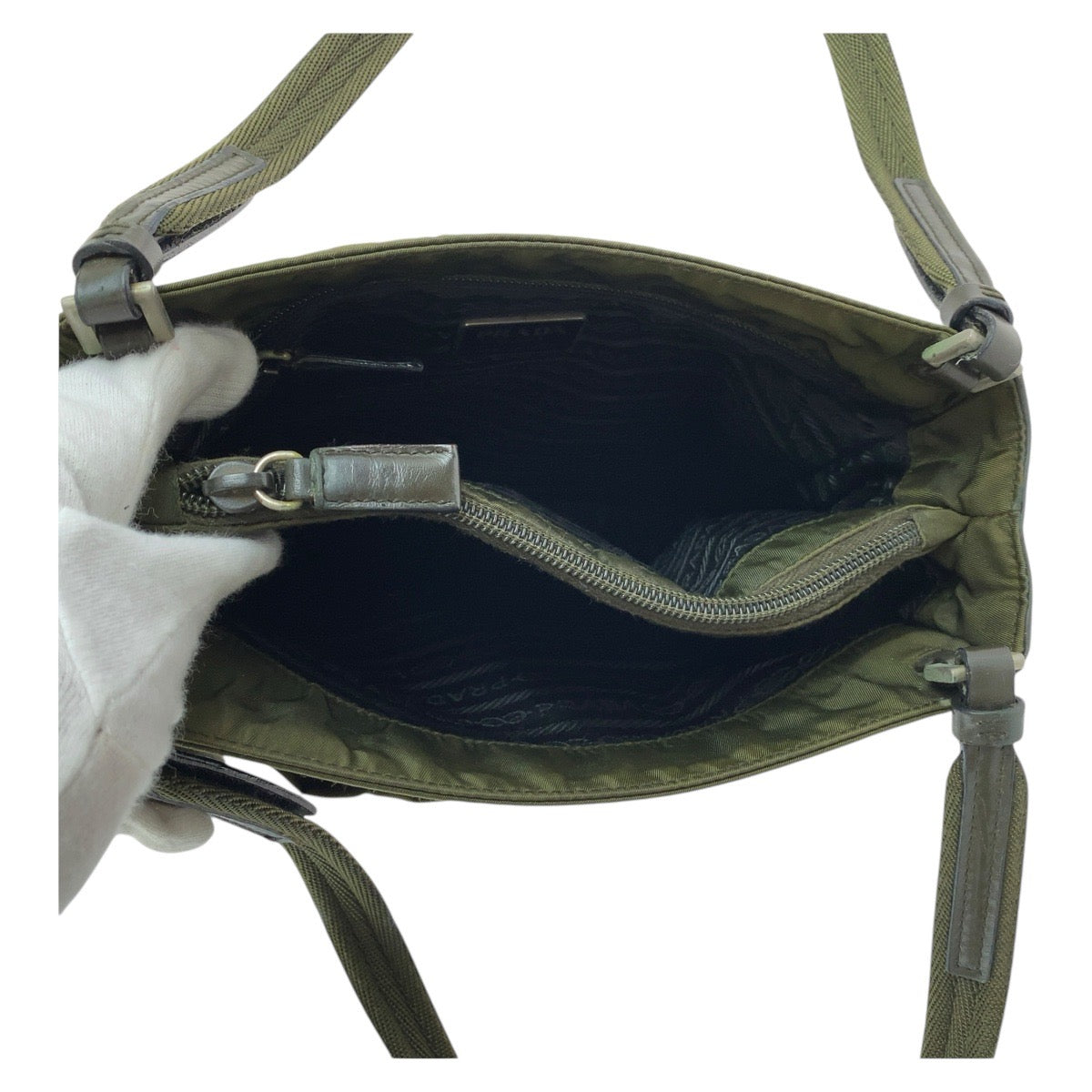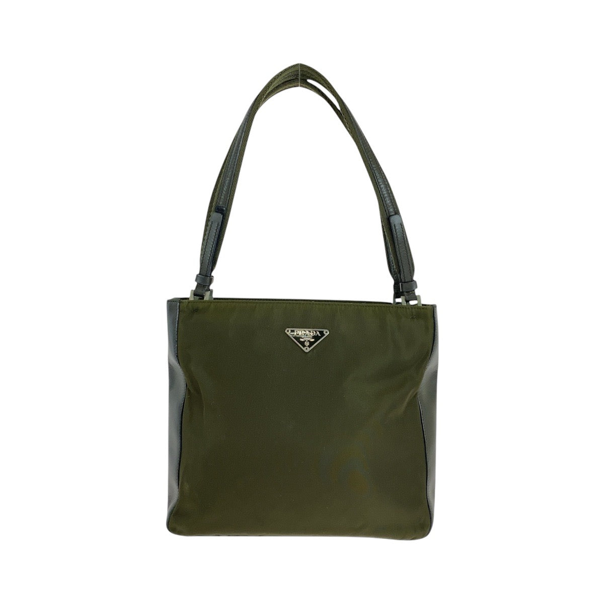 PRADA Tote Bag Nylon Khaki SilverMetal Tote Bag Shoulder Bag Test Triangle With logo Women Used Authentic