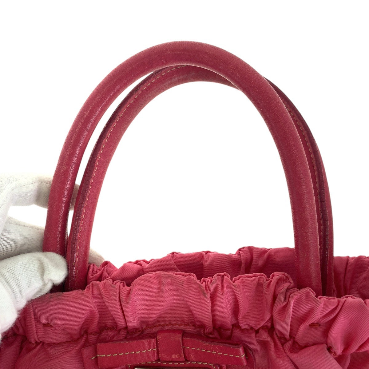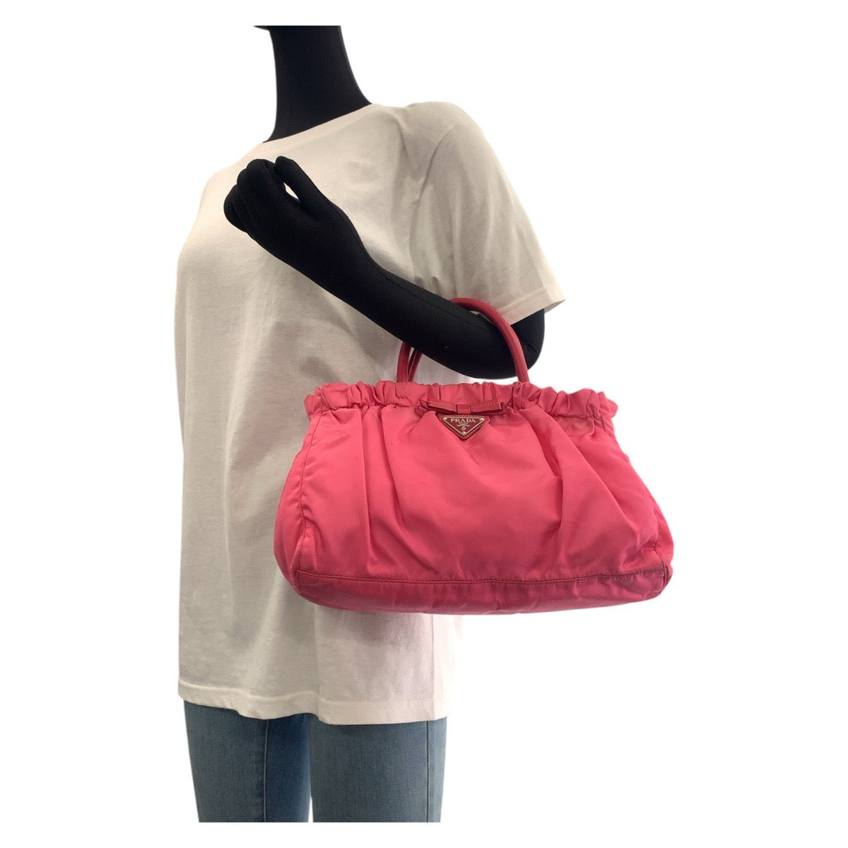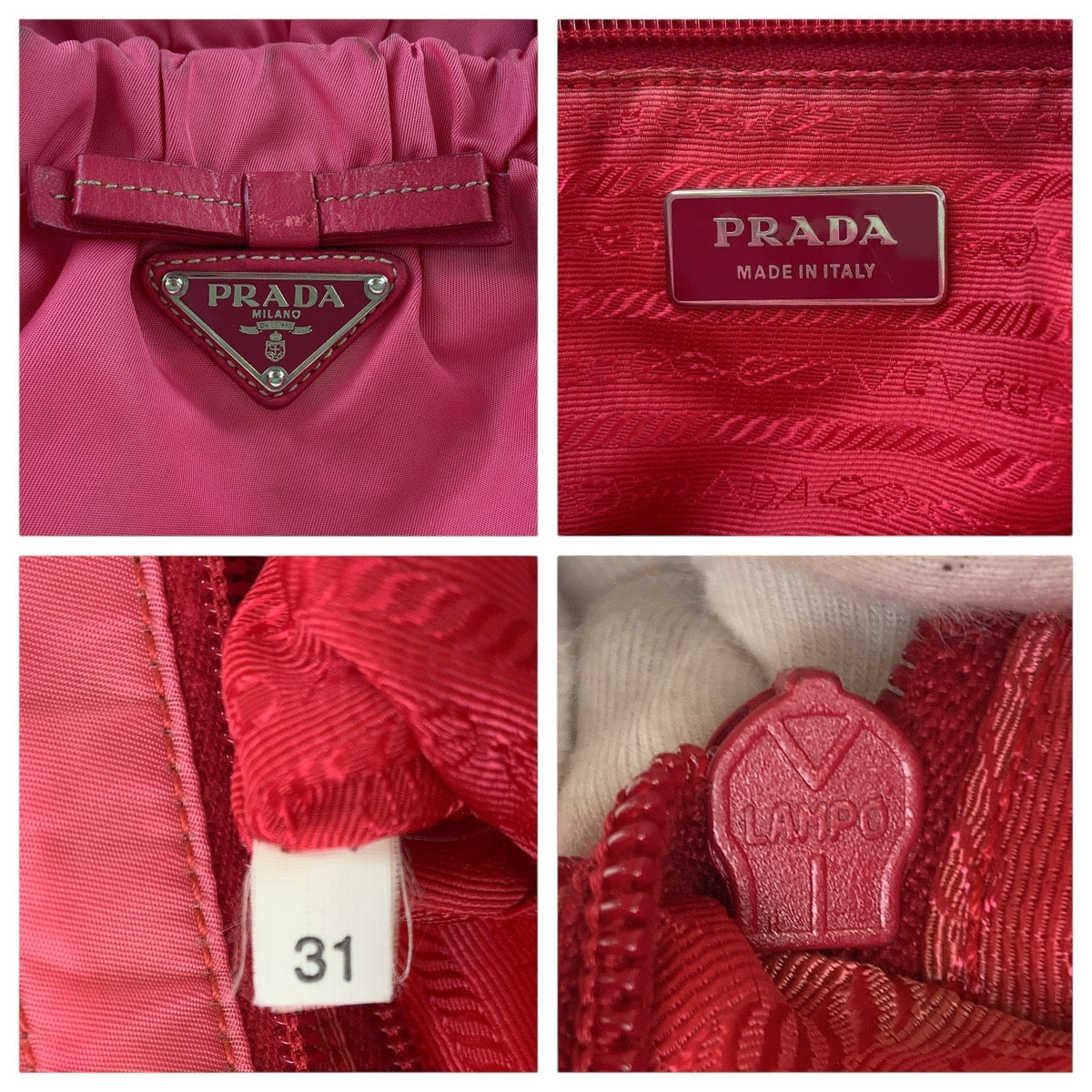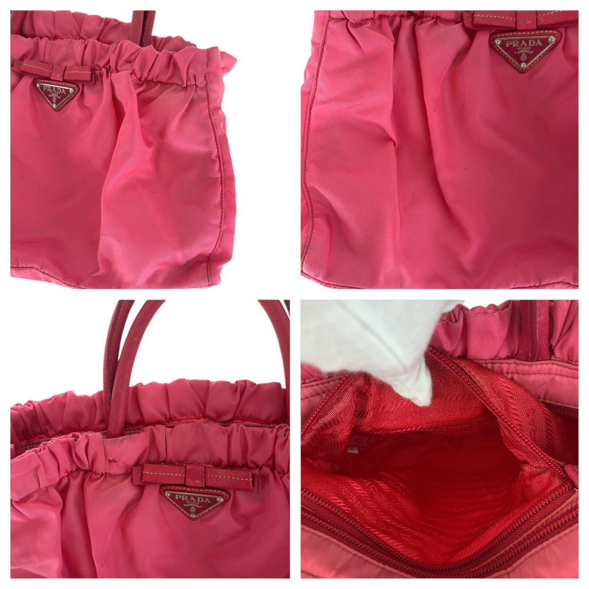 PRADA Tote Bag Nylon, Leather pink Tote Bag Shoulder Bag 2way Test Triangle With logo Women Used Authentic