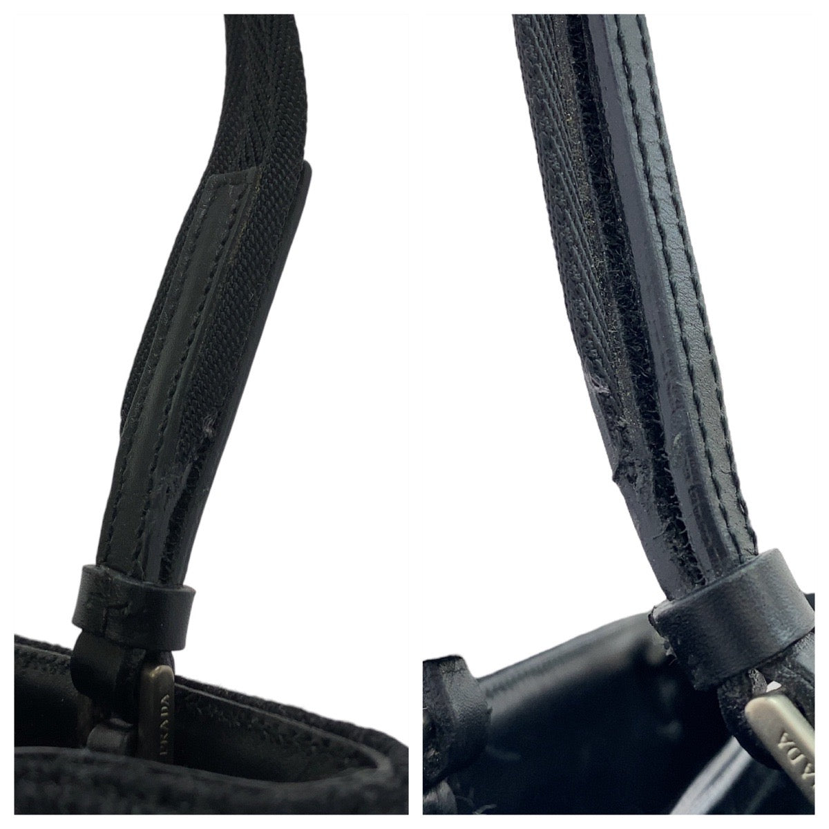 PRADA Tote Bag wool Black SilverMetal Tote Bag Shoulder Bag Triangle With logo Women Used Authentic