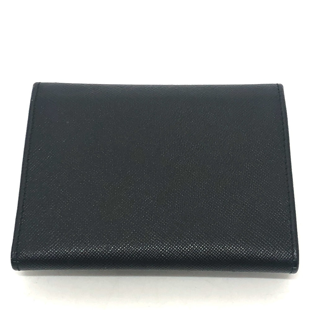 PRADA Trifold wallet M176A Safiano leather black triangle plate Women Used Authentic