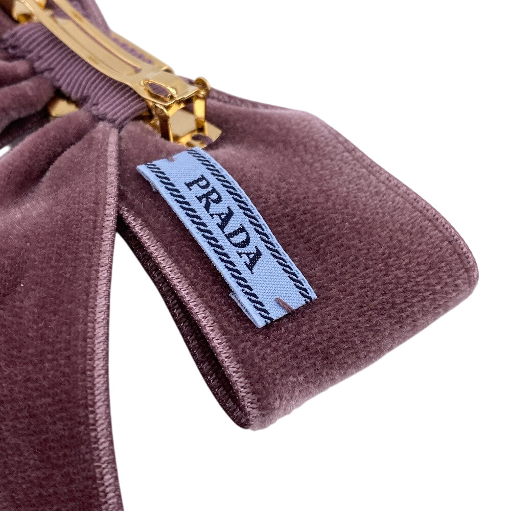PRADA Valletta 1IF154 Velor pink Triangle Plate Ribbon hair accessory