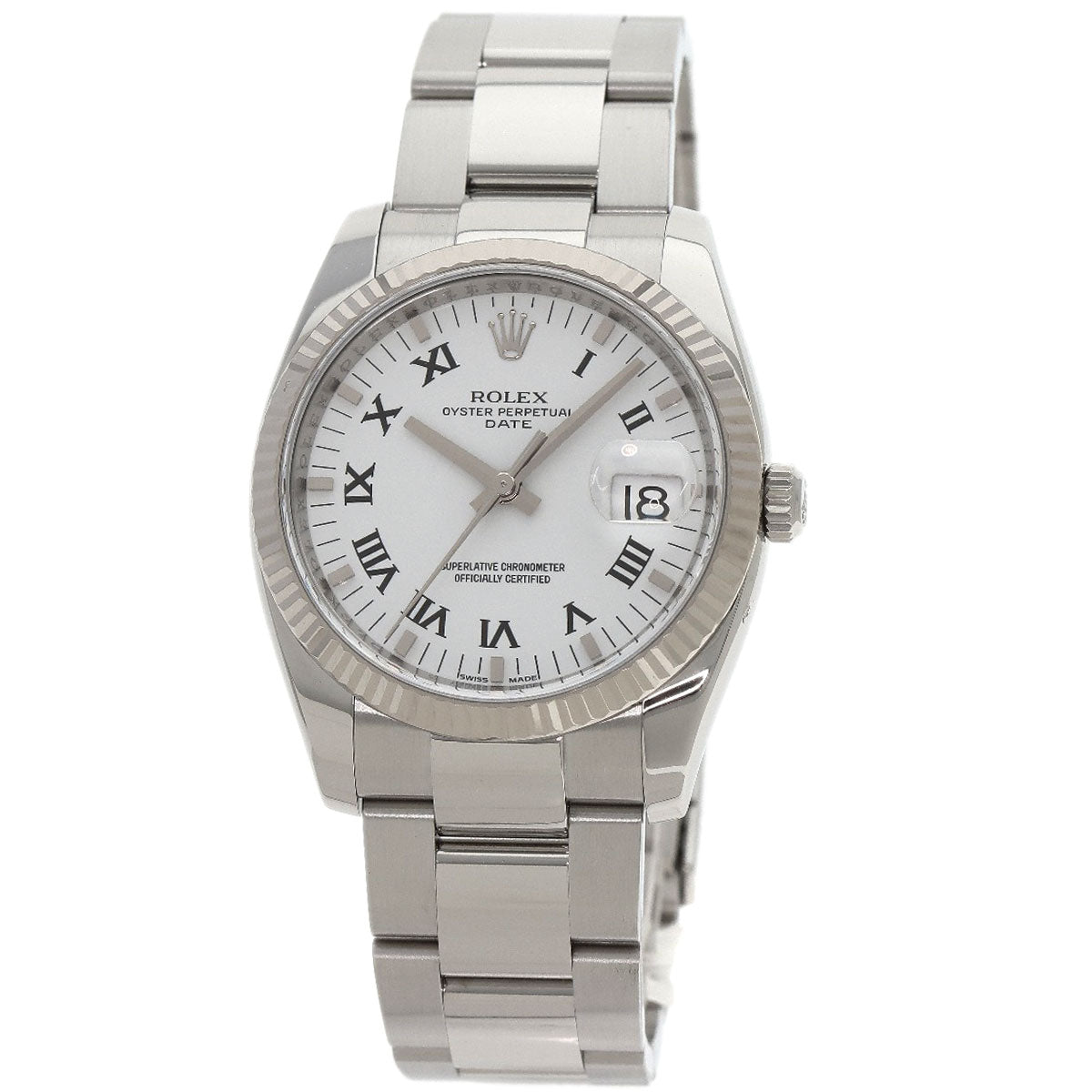 ROLEX Watches Mechanical Automatic 115234 Stainless Steel , Stainless Steel , K18WG Silver Oyster Perpetual Date white dial mens Used Authentic