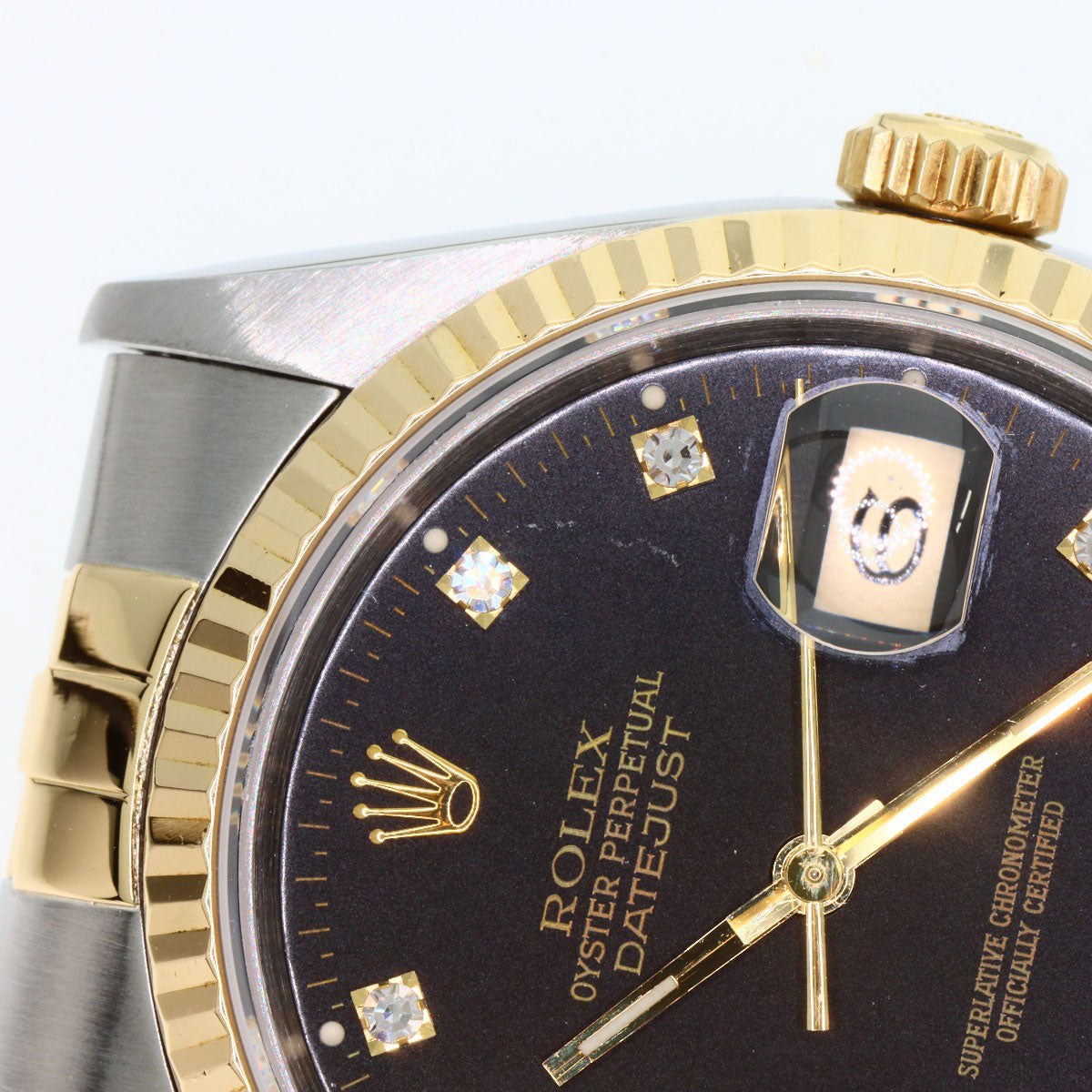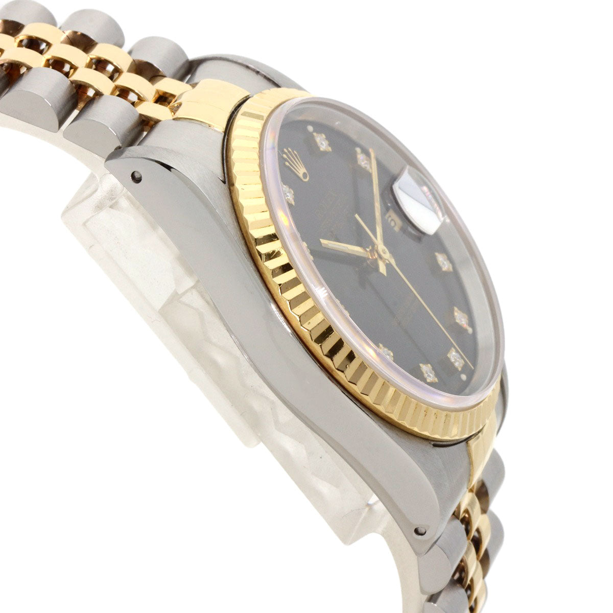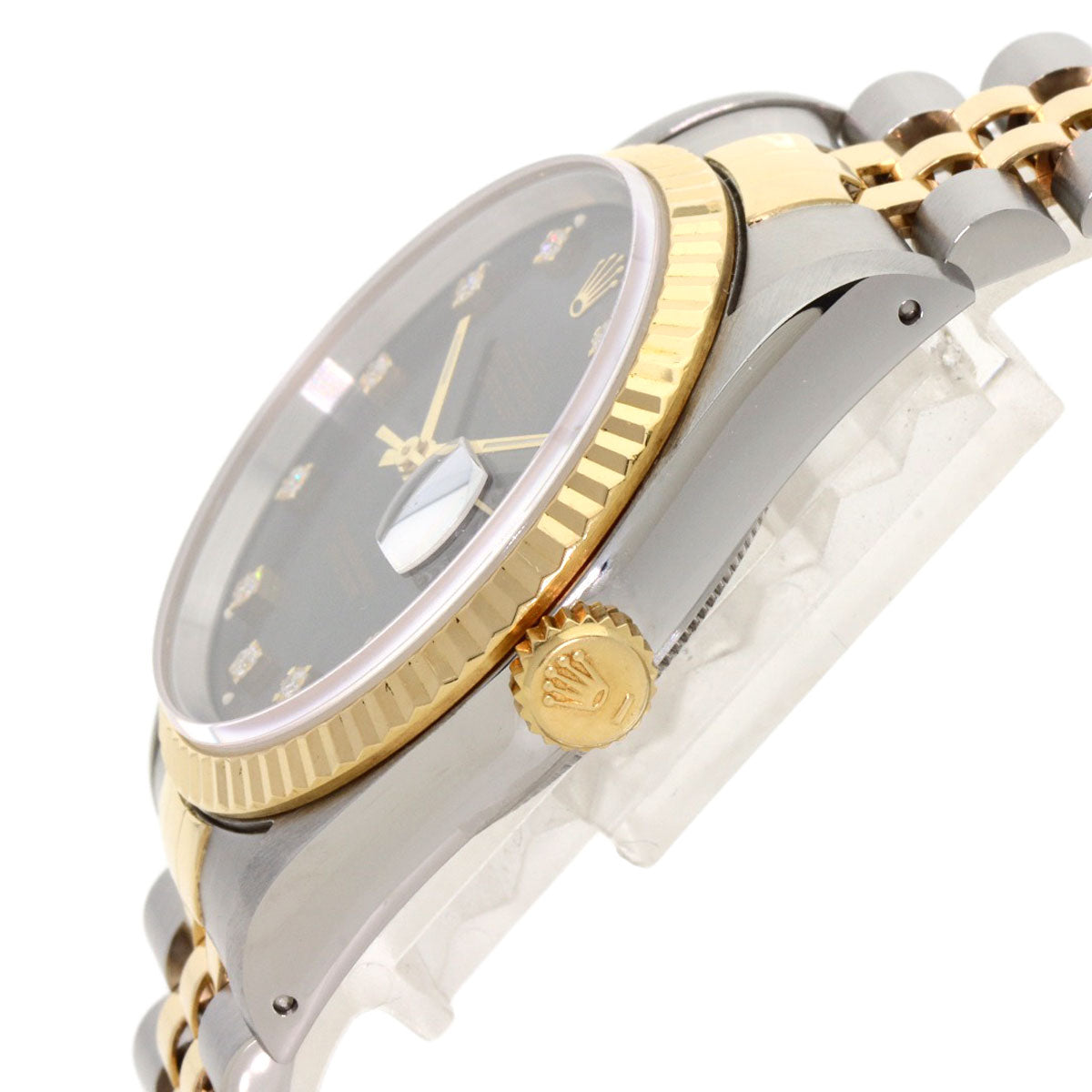 ROLEX Watches Mechanical Automatic 16233G Stainless Steel , SSxK18YG gold Datejust 10P Diamond black dial mens Used Authentic