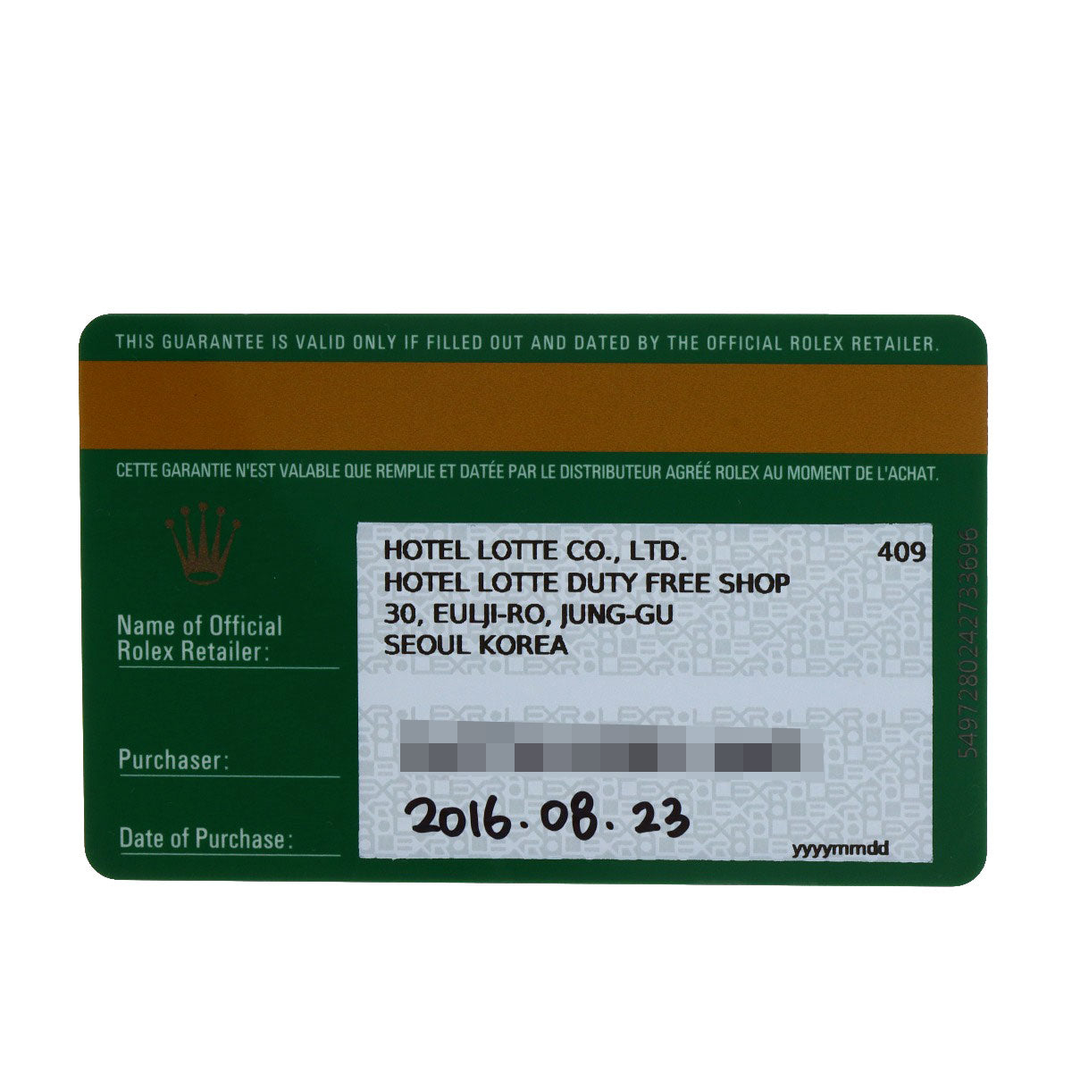 Accessories Rolex Card Box