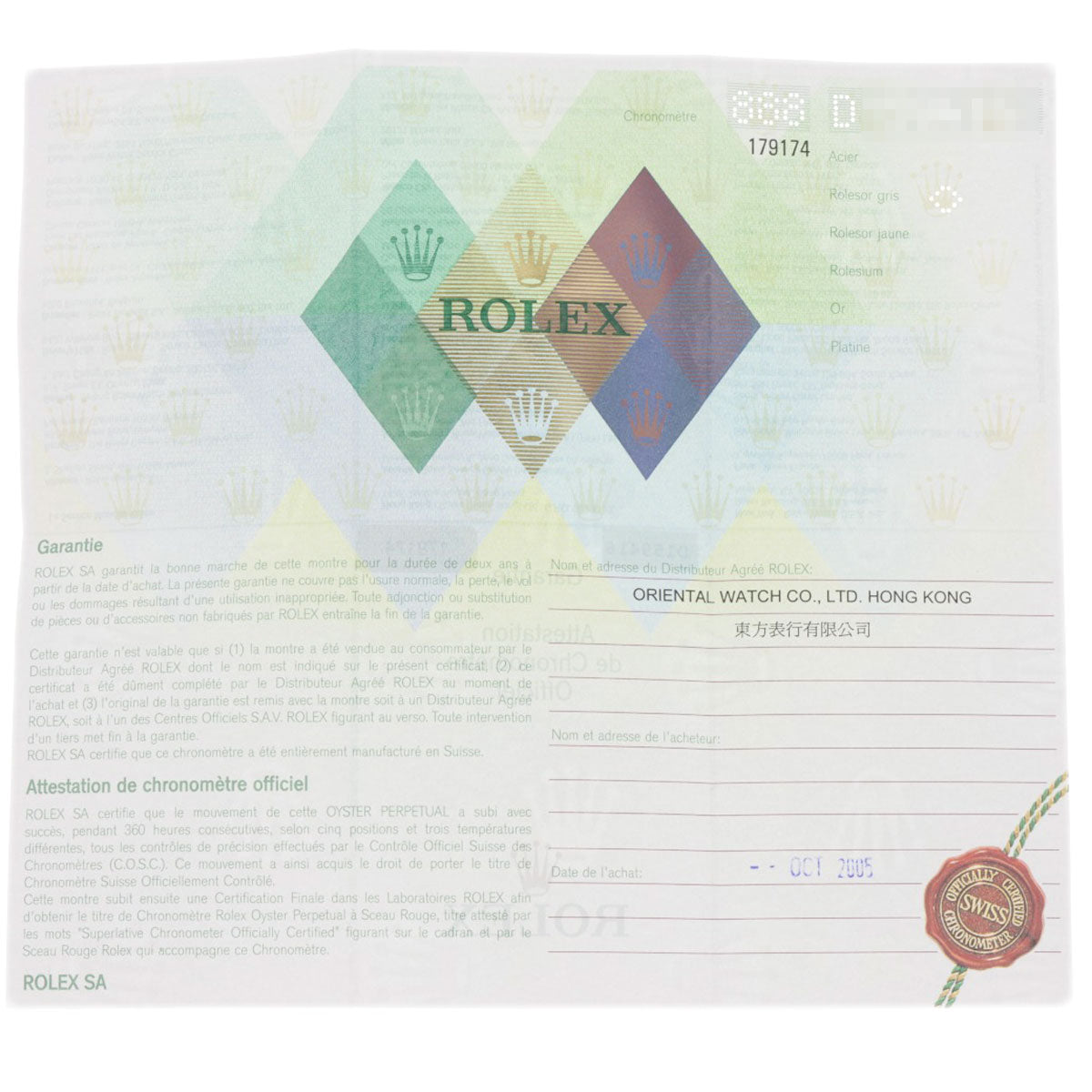 Accessories Rolex warranty card (parallel import paper)