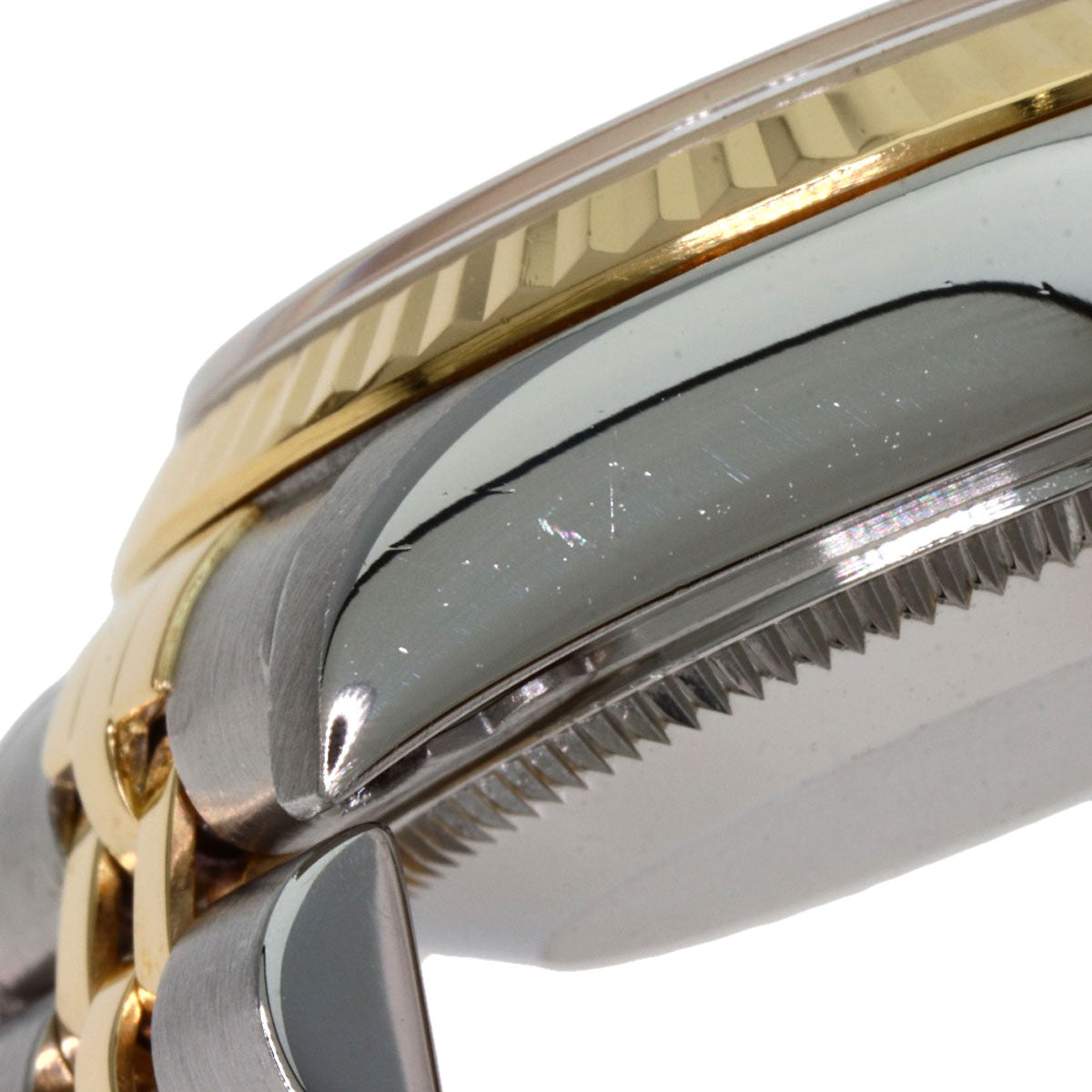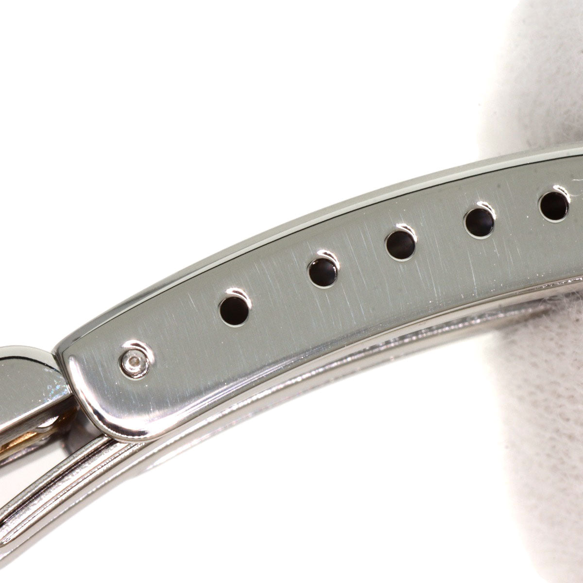 ■Condition Damage: Case) Minor scratches/Dent Bezel) Scratches/Dent Band) stretching/Minor scratches/tarnish Crown) Minor scratches Clasp) Minor scratches Back cover) Scratches/Dent/Rubbed ■Notes There is a chip on the edge of the glass at 1 and 2 o'clock. There is stain on the edge of the glass window. There are dullness on the hands, minor scratches around the center of the glass surface, and discolorations around the 1 o'clock diamond on the dial.