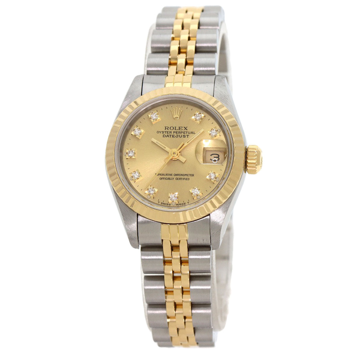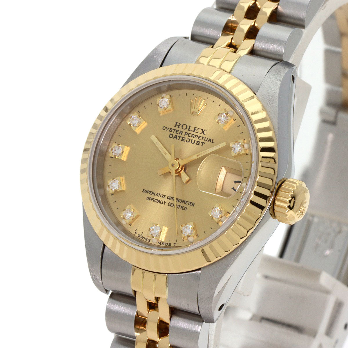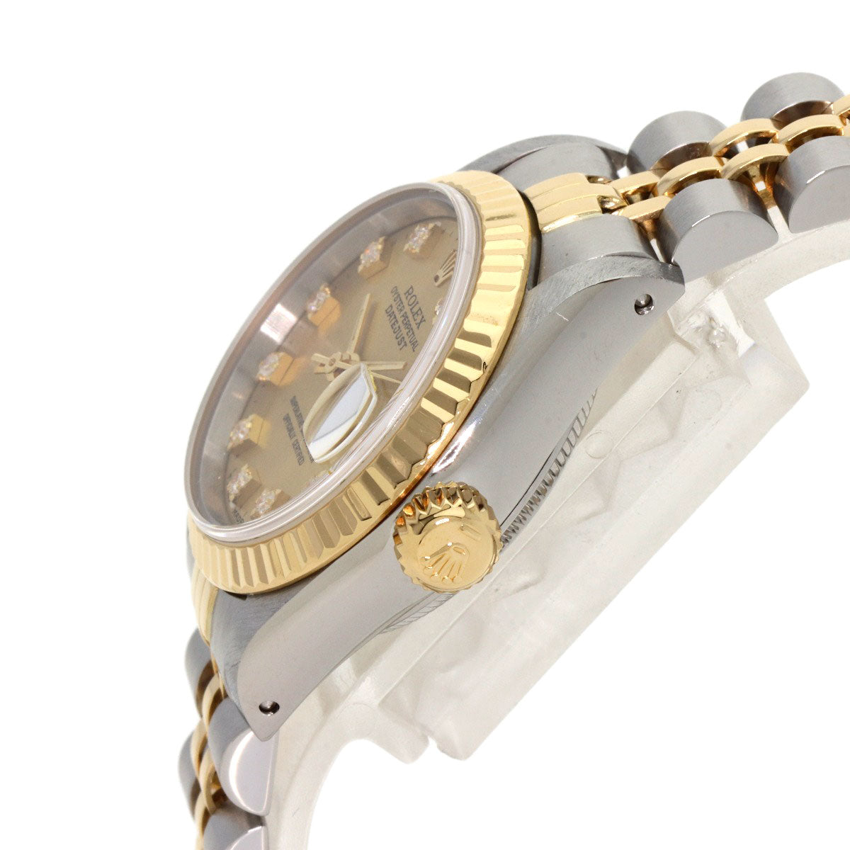 ROLEX Watches Mechanical Automatic 69173G Stainless Steel , SSxK18YG gold Datejust 10P Diamond Champagne Gold dial Women Used Authentic