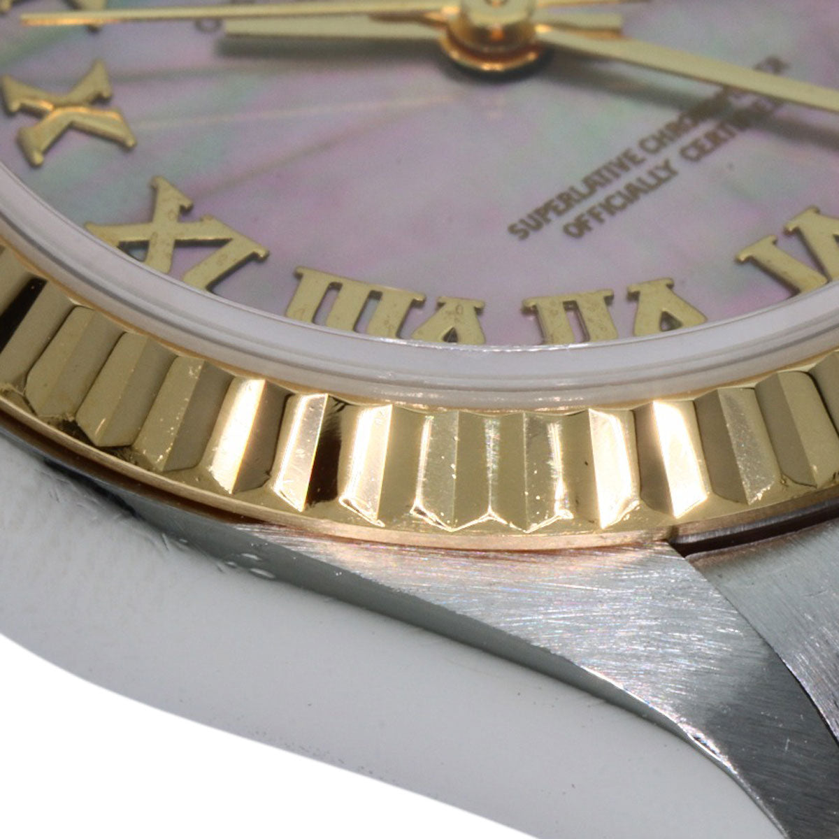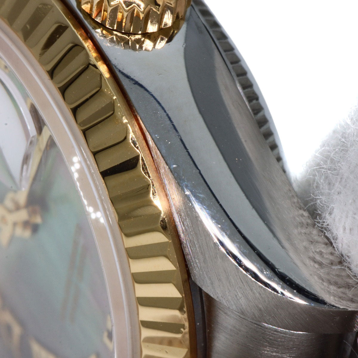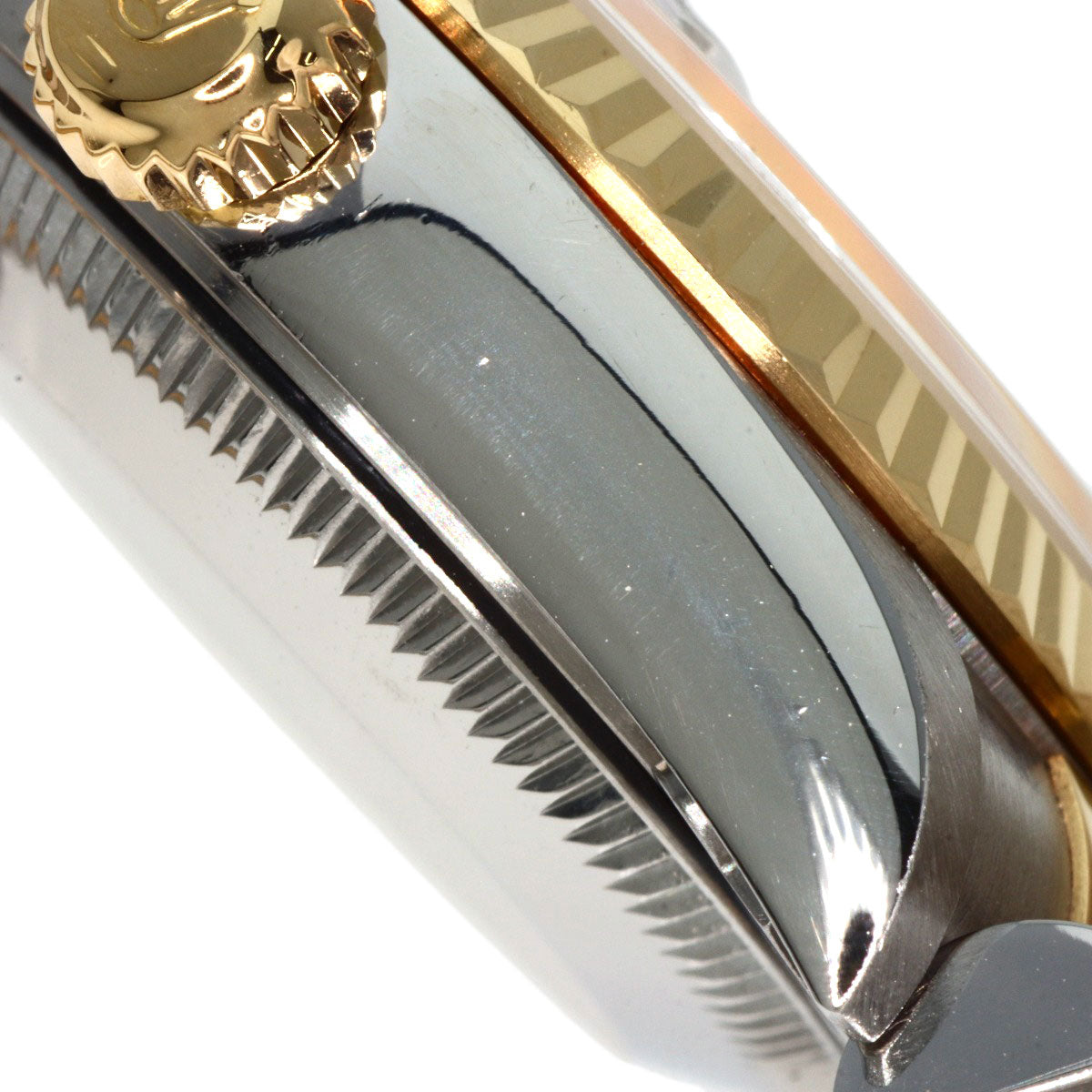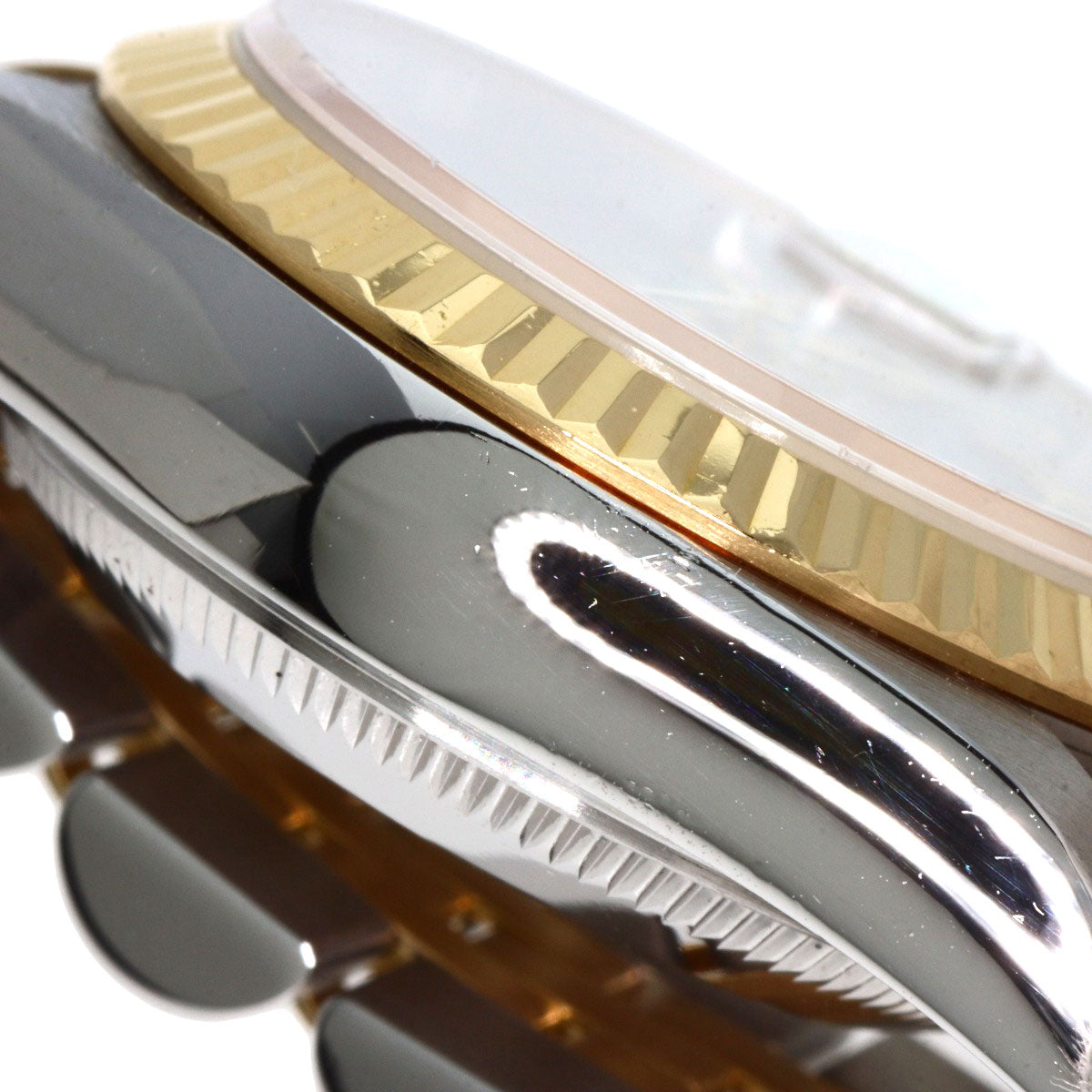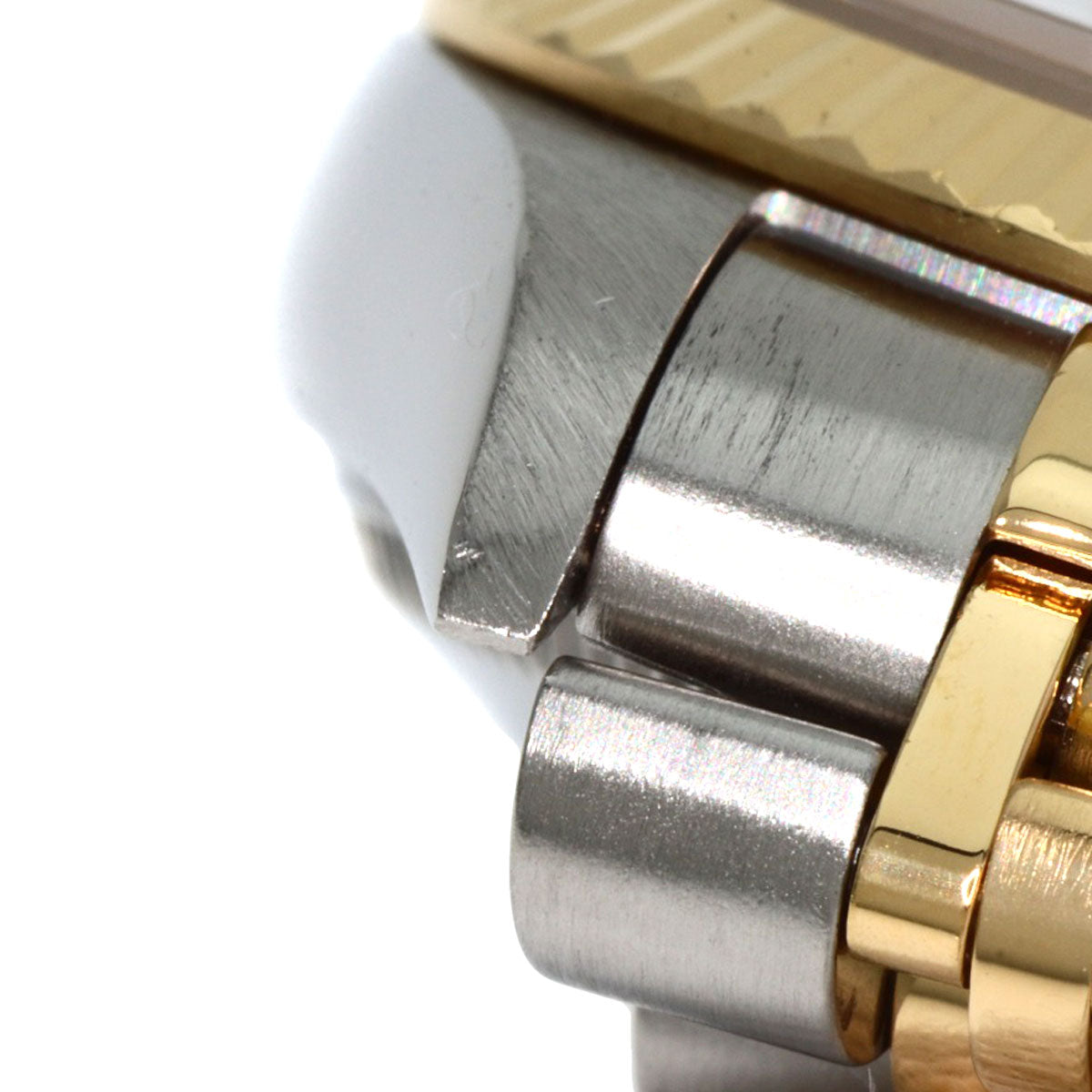 ■Condition Areas of damage: Case) Dent/Minor scratches Bezel) Dent/Minor scratches Band) stretching/Minor scratches/Dent Crown) Minor scratches Clasp) Very Slight Scratches Dial window) Minor scratches Back cover) Minor scratches ■Notes There are minor scratches on the glass surface at 8 o'clock. There is a chip on the entire edge of the glass. There is dullness on the Roman numerals on the dial and the second hand.