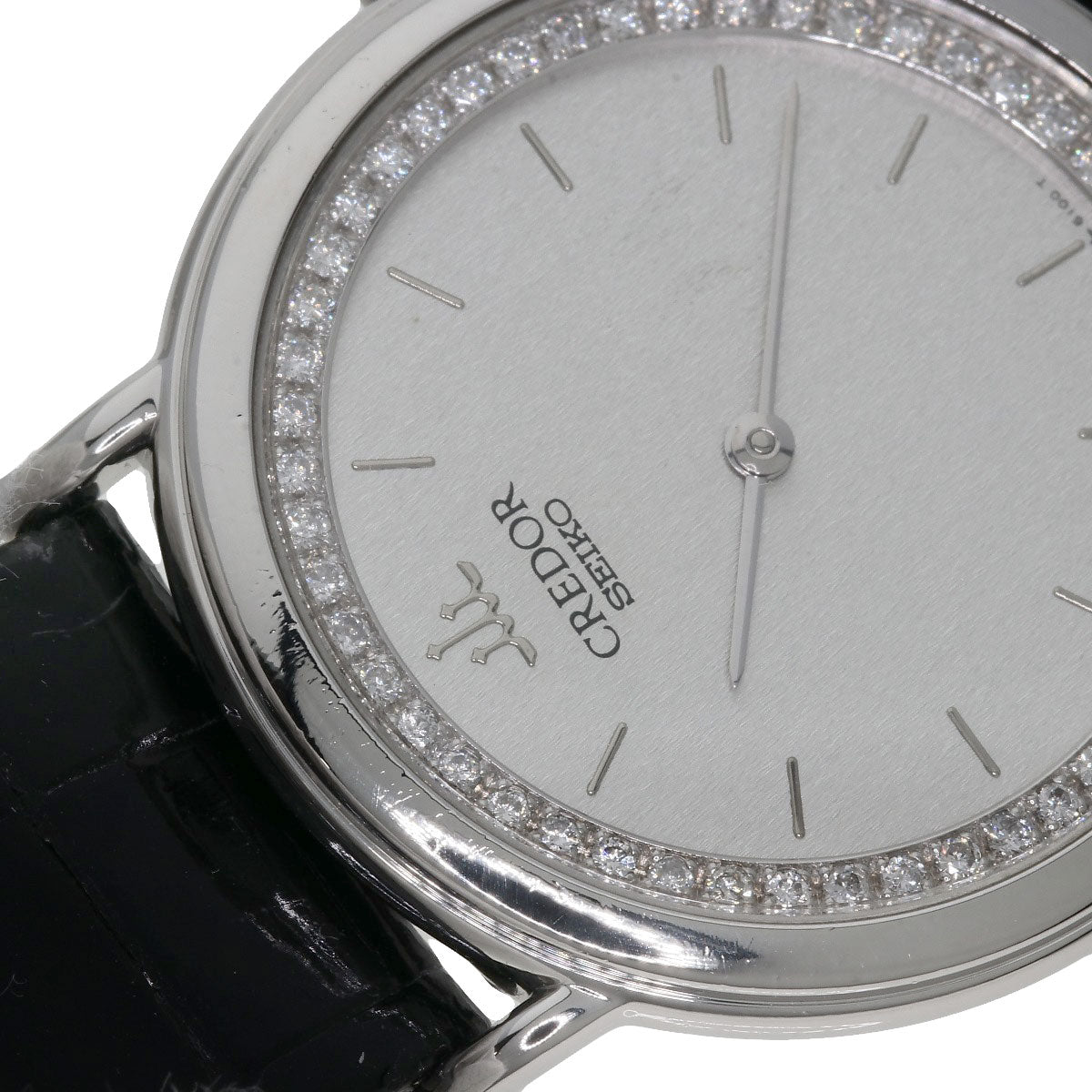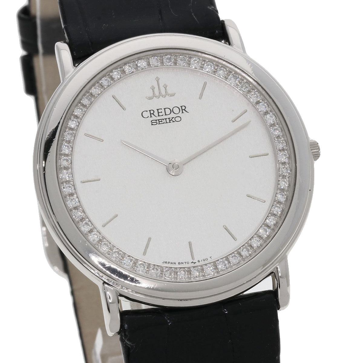 SEIKO Watches Quartz GBAD011 8N70-6120 PT900, leather Silver CREDOR Diamond Silver dial mens Used Authentic