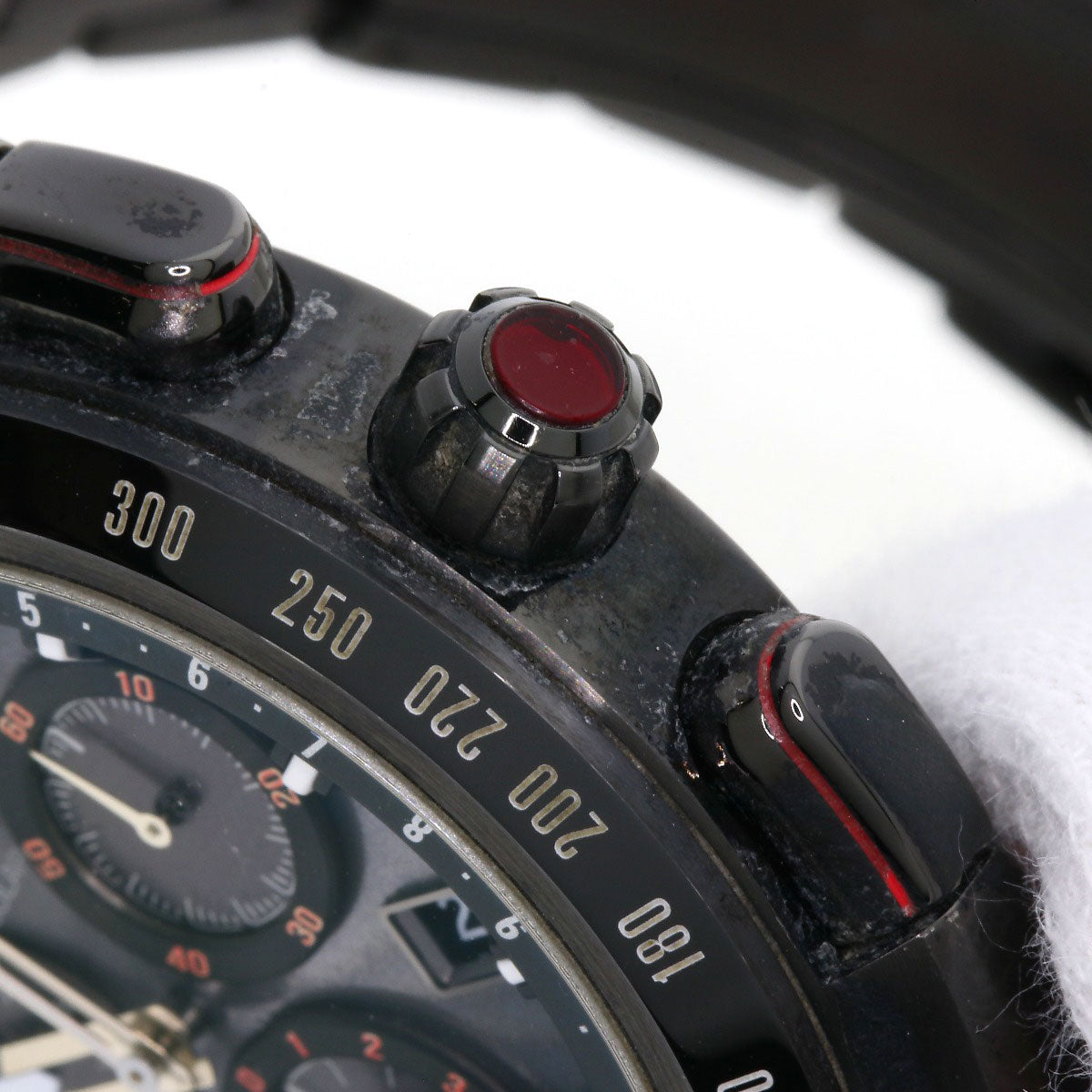 ■Condition Damage: Case) Rubbed/Stain/Scratches/Dark marks Bezel) Dark marks/Slight scratch/Stain Band) Rubbed/Scratches/Dark marks Crown) Scratches/Cracks/Stain Clasp) Dark marks/Slight scratch/Rubbed Case back) Rubbed/Stain/Dark marks/Scratches ■Notes There are scratches and scratches on the glass coating. The box shows signs of aging.