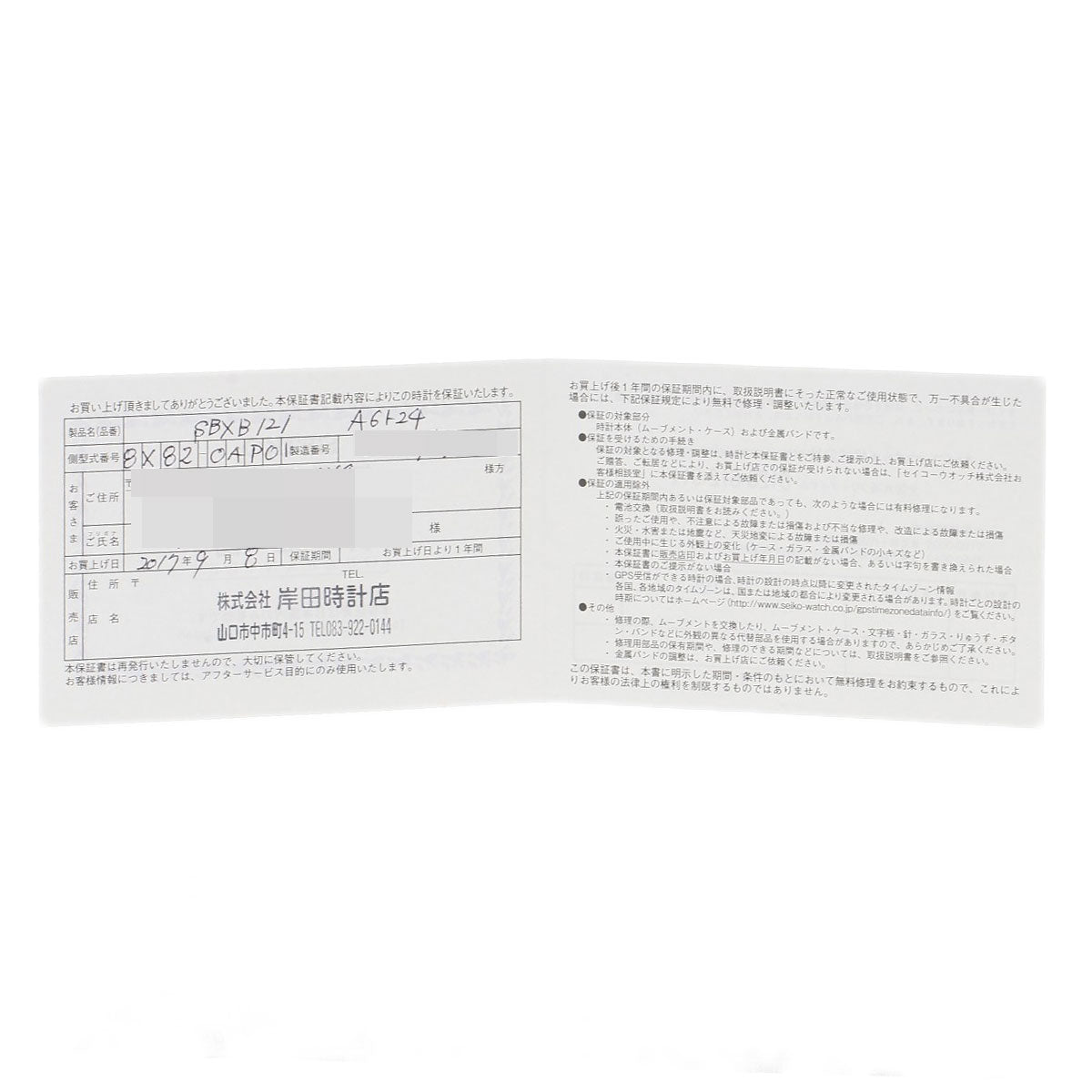 Accessories Seiko warranty card, 4 links