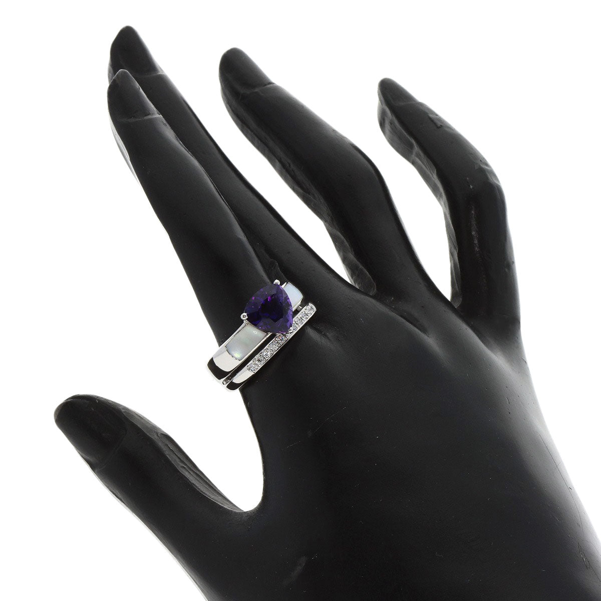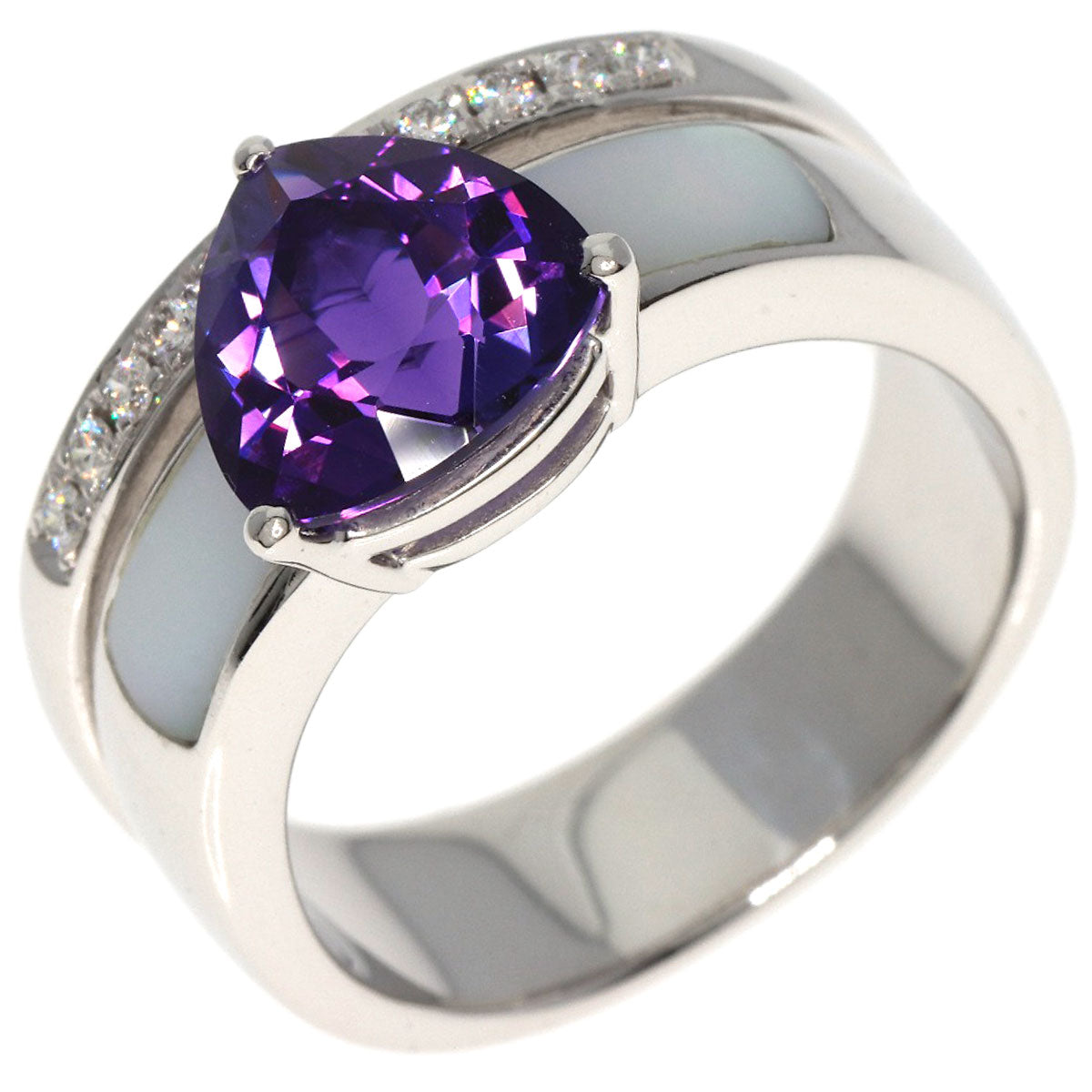 TASAKI Ring K18WG Silver Diamond Amethyst Shell
