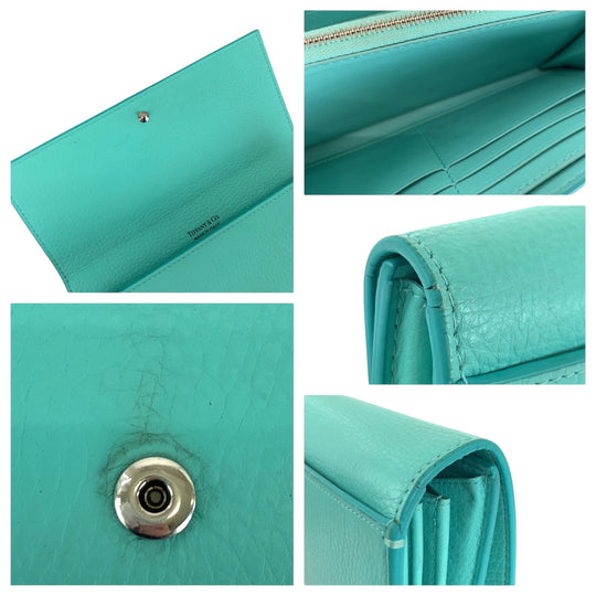 TIFFANY&Co. Long Wallet Purse leather blue Continental