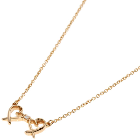 TIFFANY&Co. Necklace 18K Pink Gold gold Double rubbing heart diamond Women Used Authentic