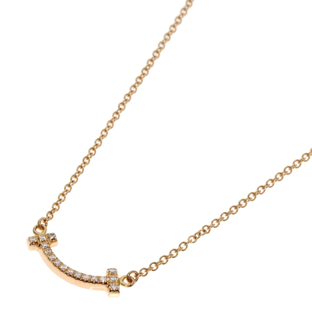 TIFFANY&Co. Necklace 18K Pink Gold gold T Smile Mini Diamond Women Used Authentic