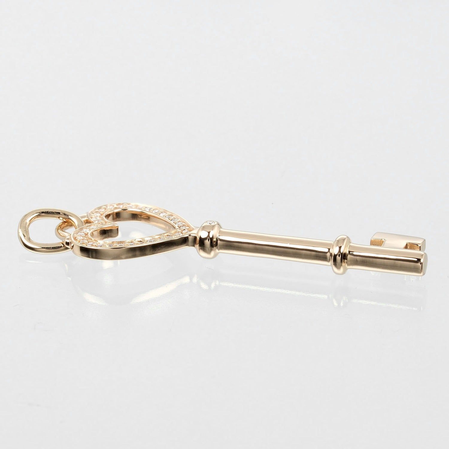 TIFFANY&Co. Pendant top K18 pink gold, diamond gold Heart key Women Used Authentic
