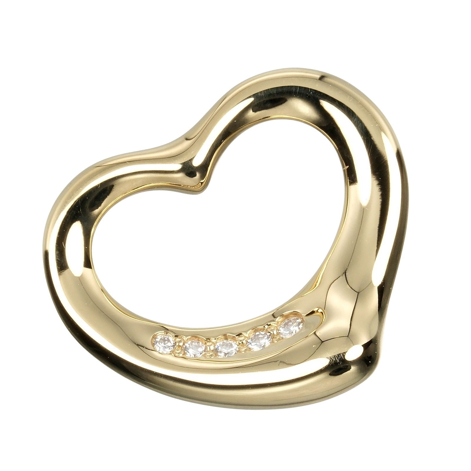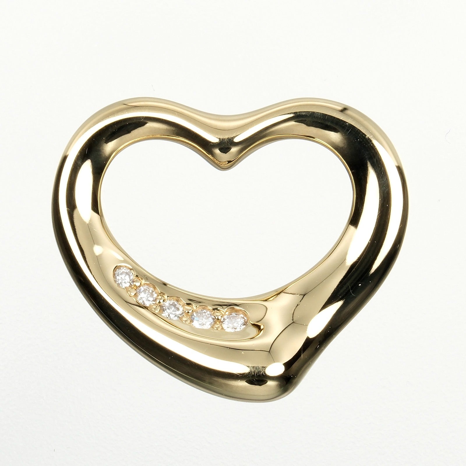 TIFFANY&Co. Pendant top K18 Yellow Gold, Diamond gold Open heart Women Used Authentic