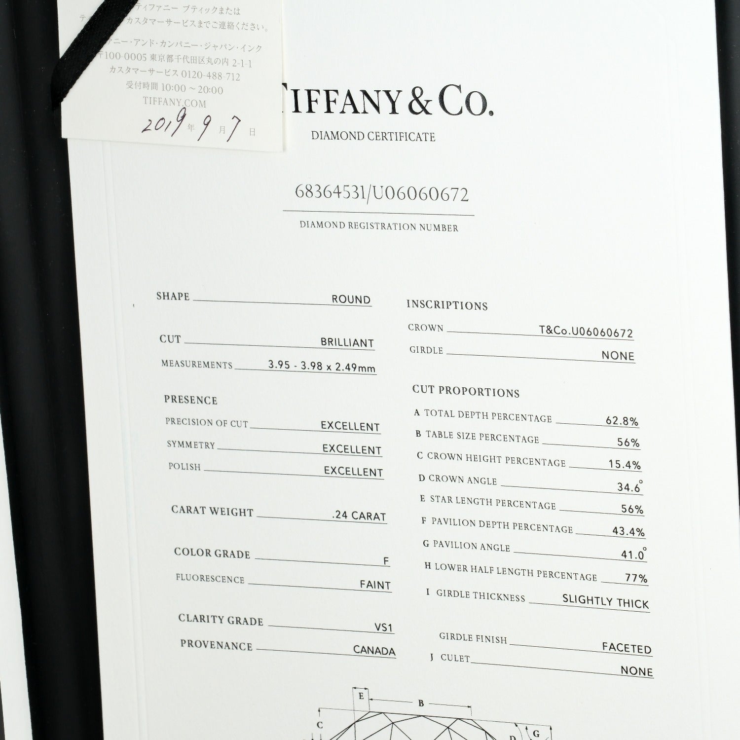 Model number 0.24ct VS1/F/3EX