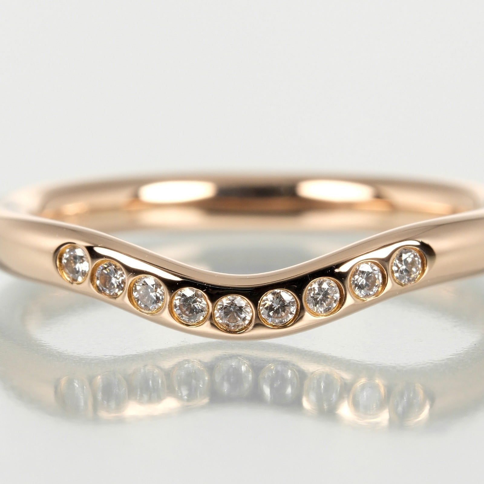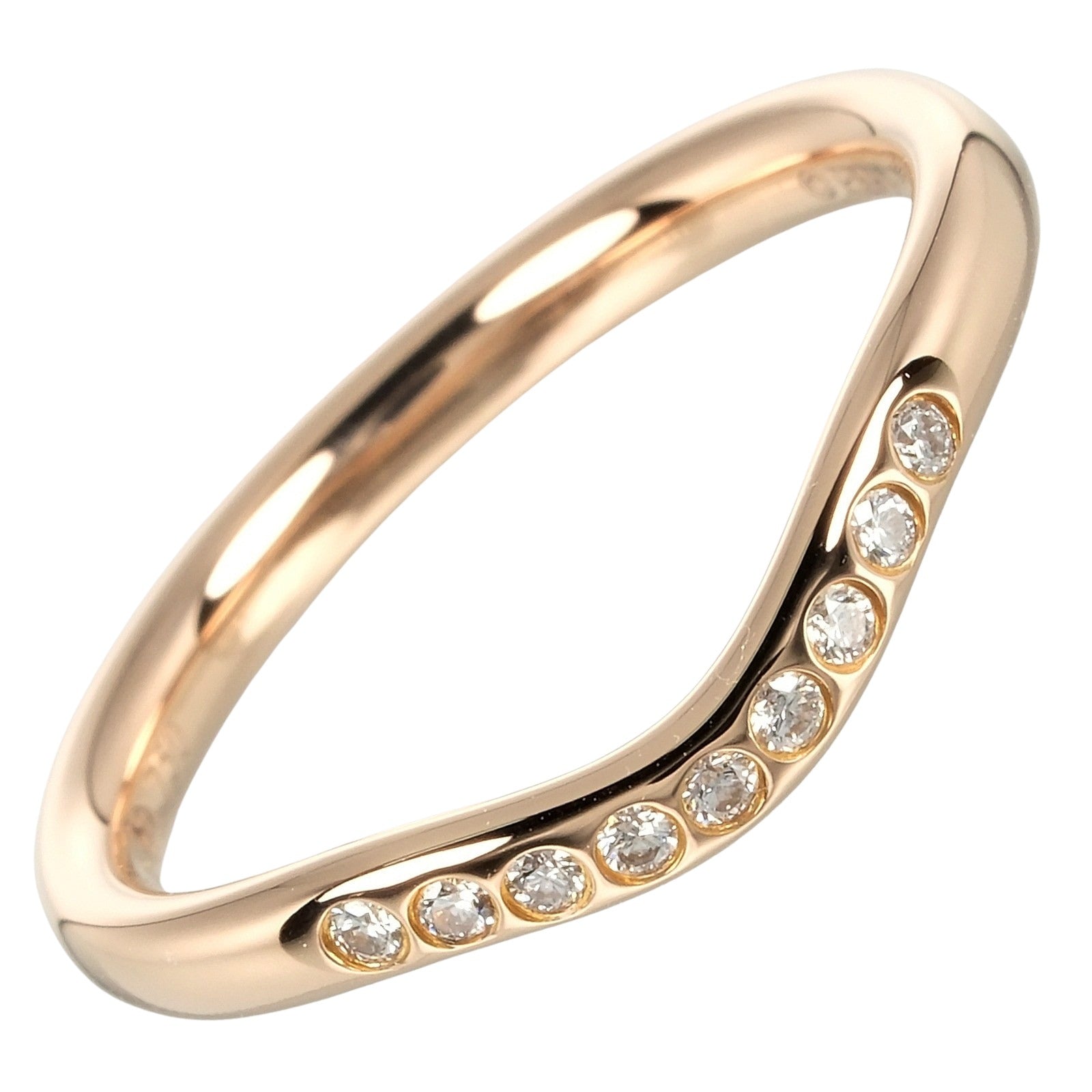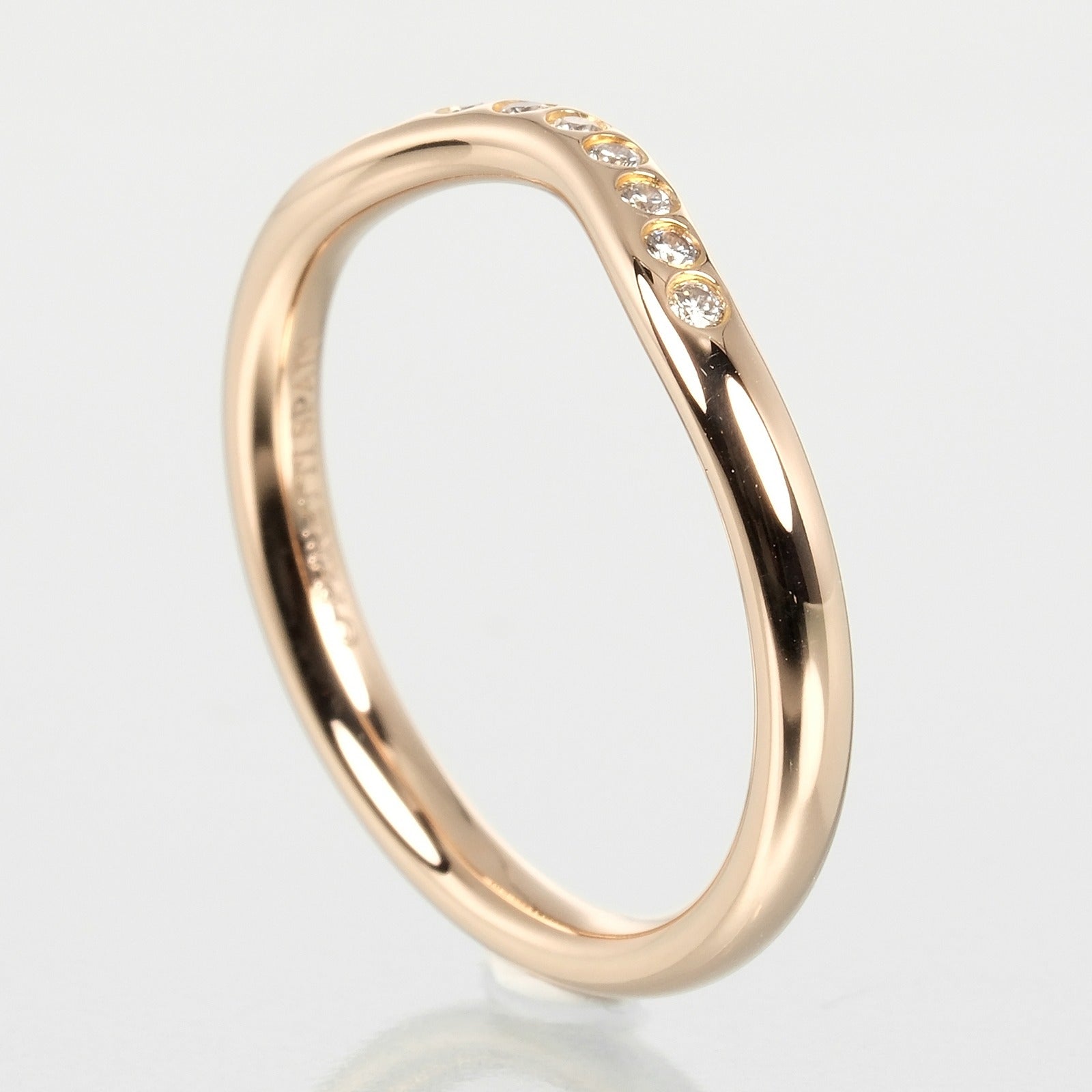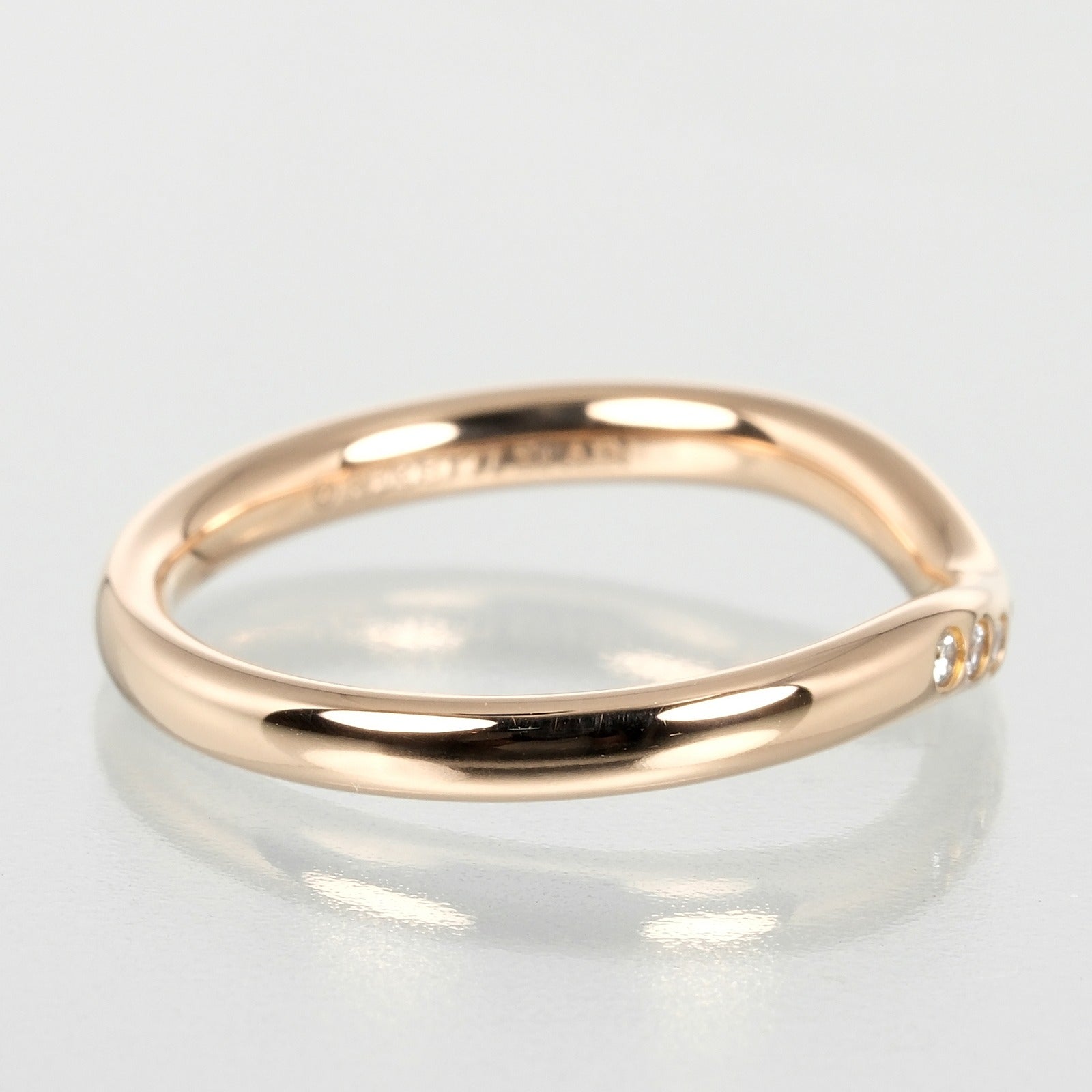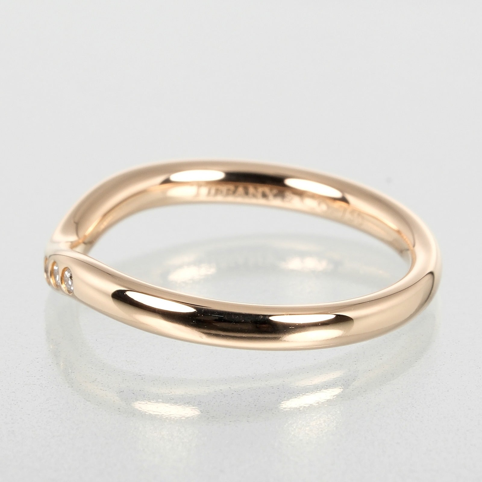 TIFFANY&Co. Ring K18 pink gold, 9P diamonds gold Curved band Women Used Authentic
