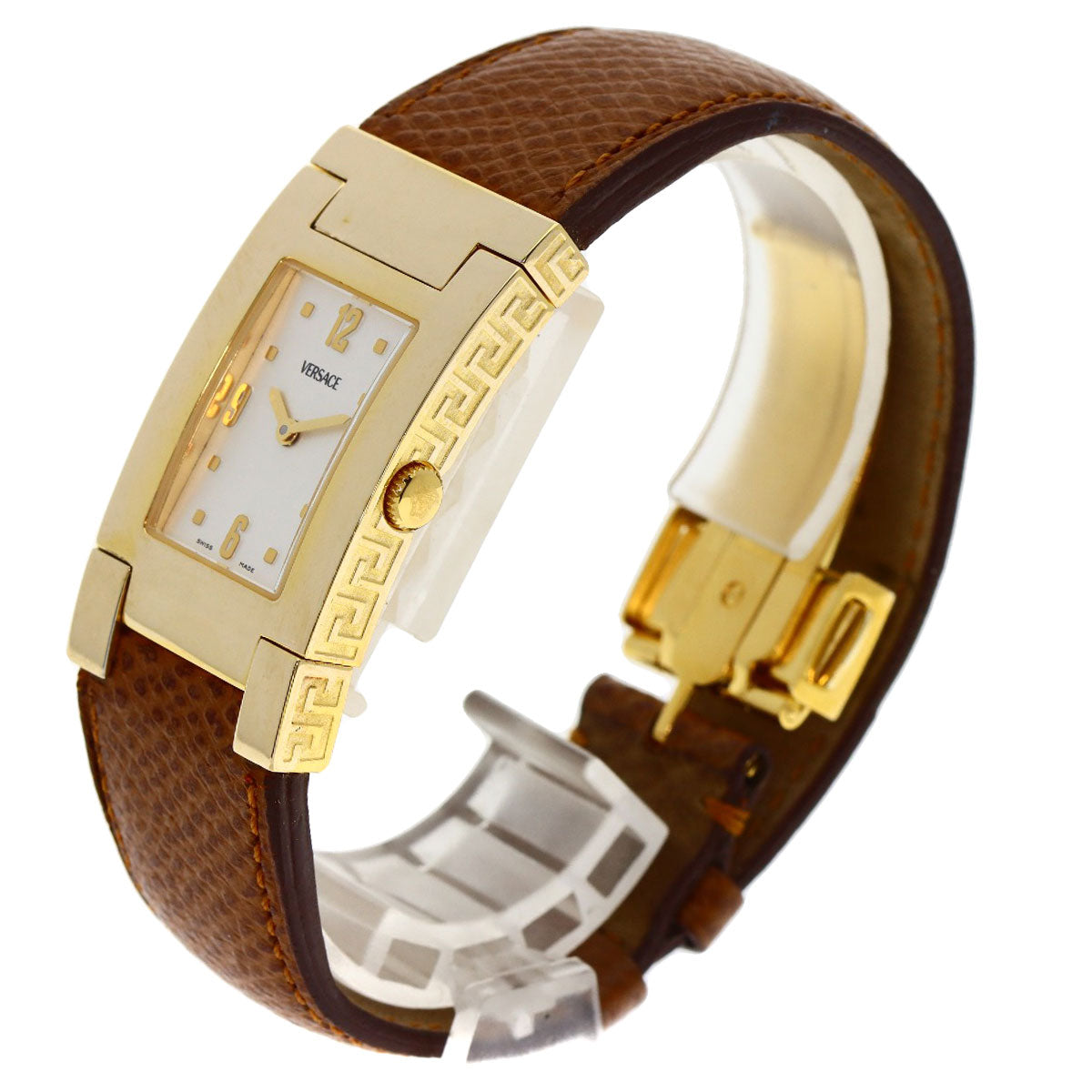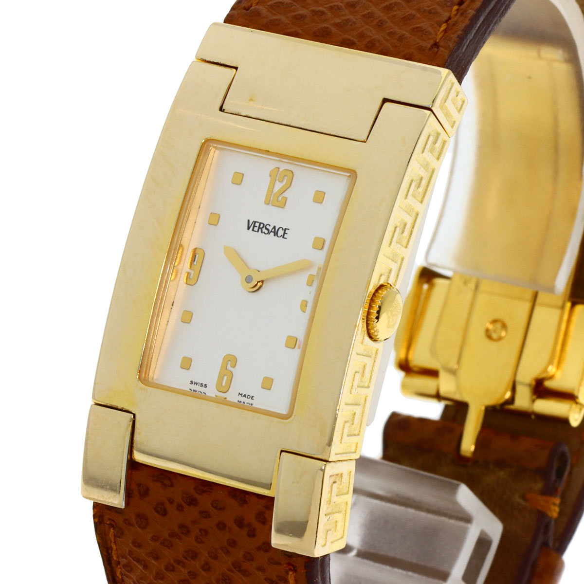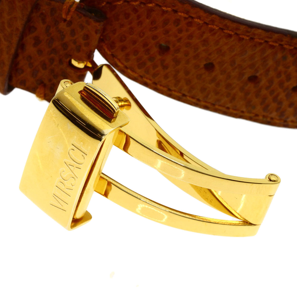 VERSACE Watches Quartz Gold Plated, Leather gold Fifth Silver dial Women Used Authentic